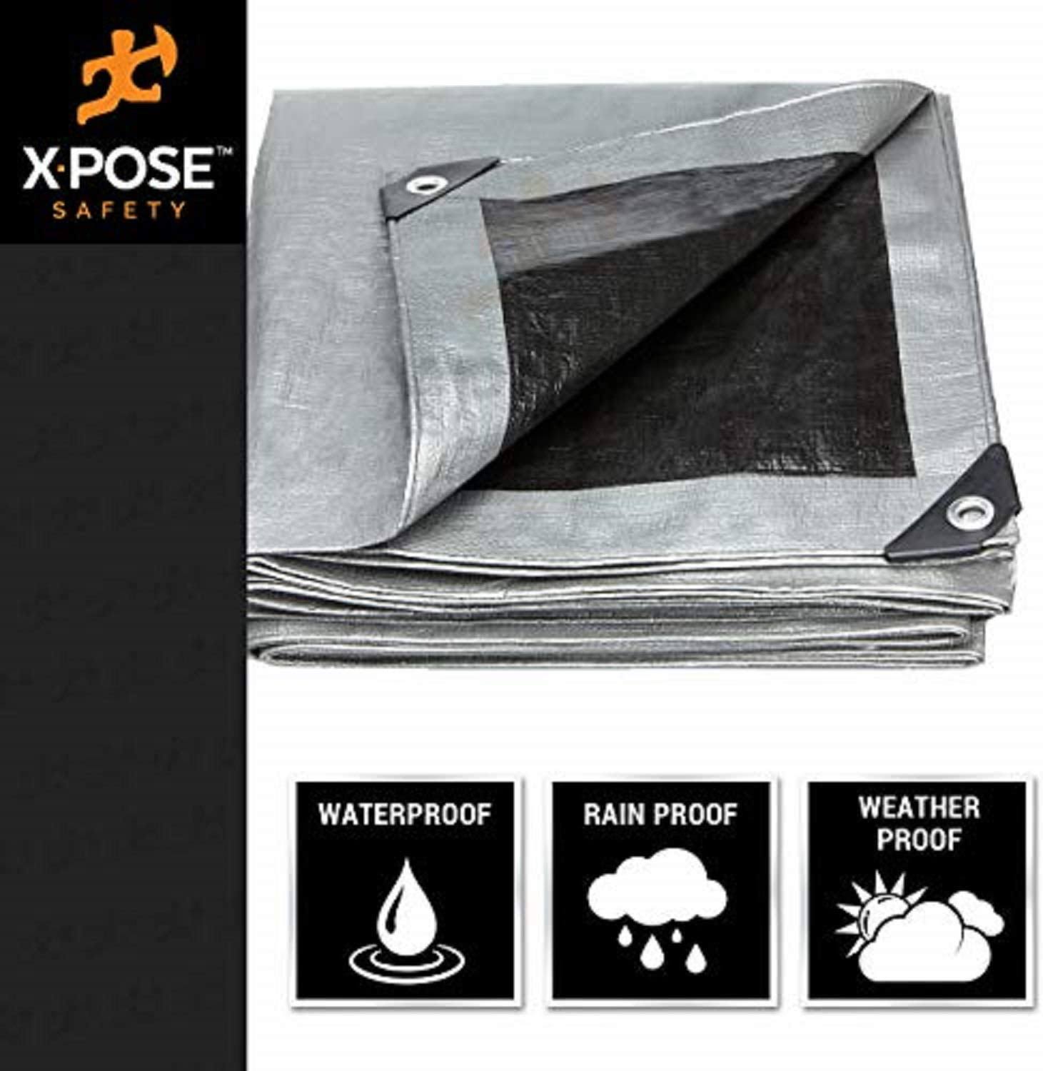 Xpose Safety Heavy Duty Poly Tarp- 6' x 8'- 10 Mil Thick Waterproof, UV Blocking Protective Cover- Reversible Silver and Black