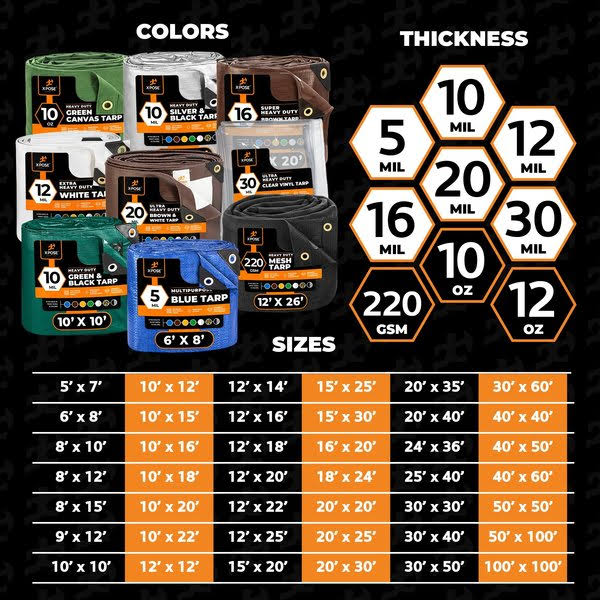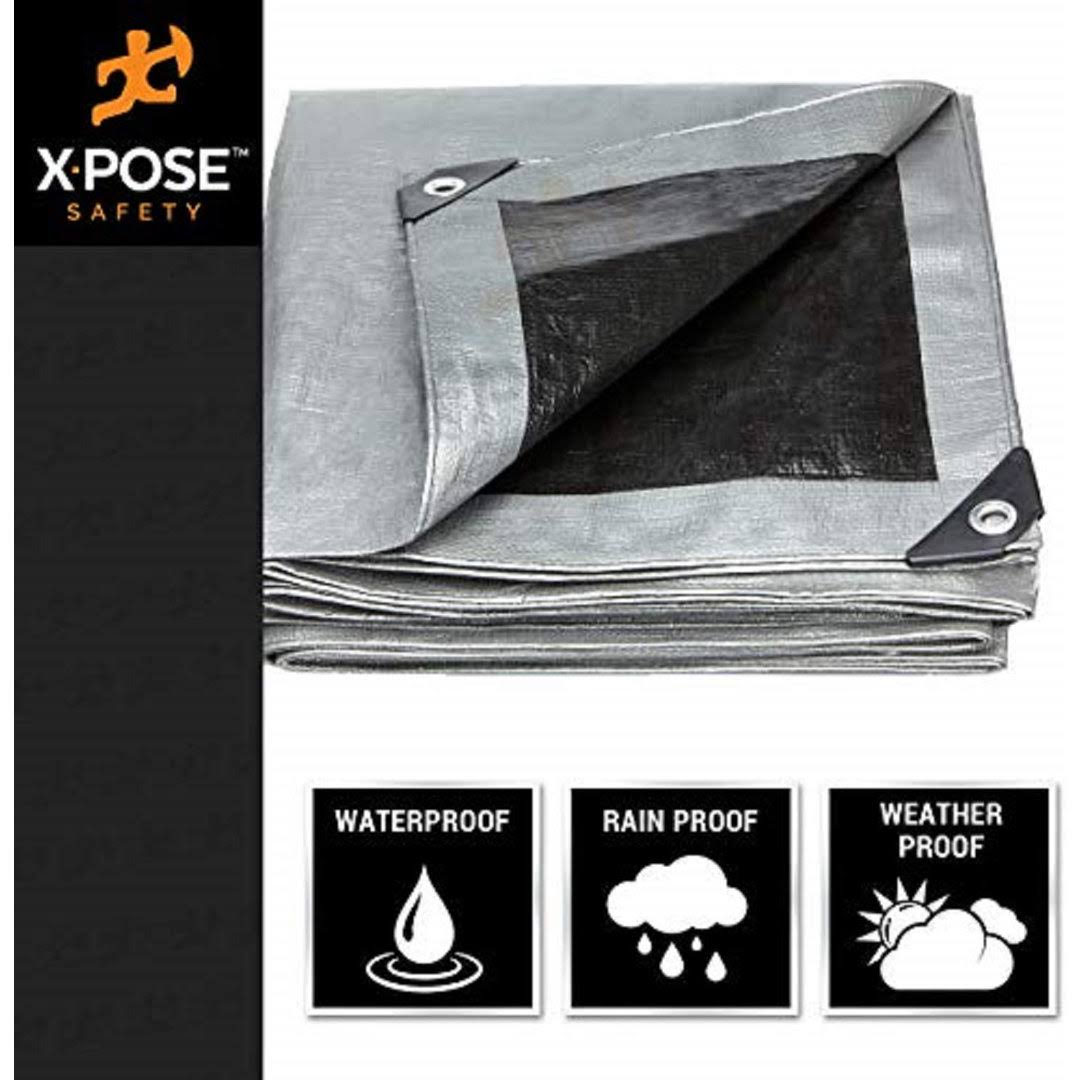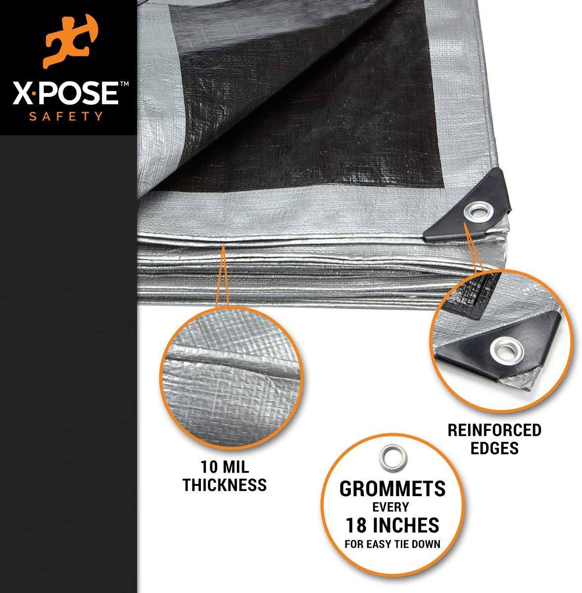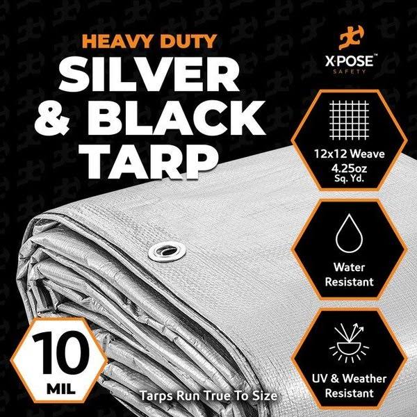 X-pose Safety Heavy Duty Poly Tarp- 10' x 20'- 10 Mil Thick Waterproof, UV Blocking Protective Cover- Reversible Silver and Black- Laminated