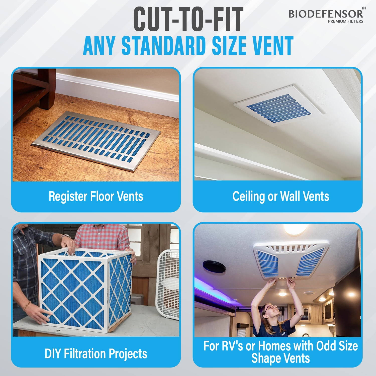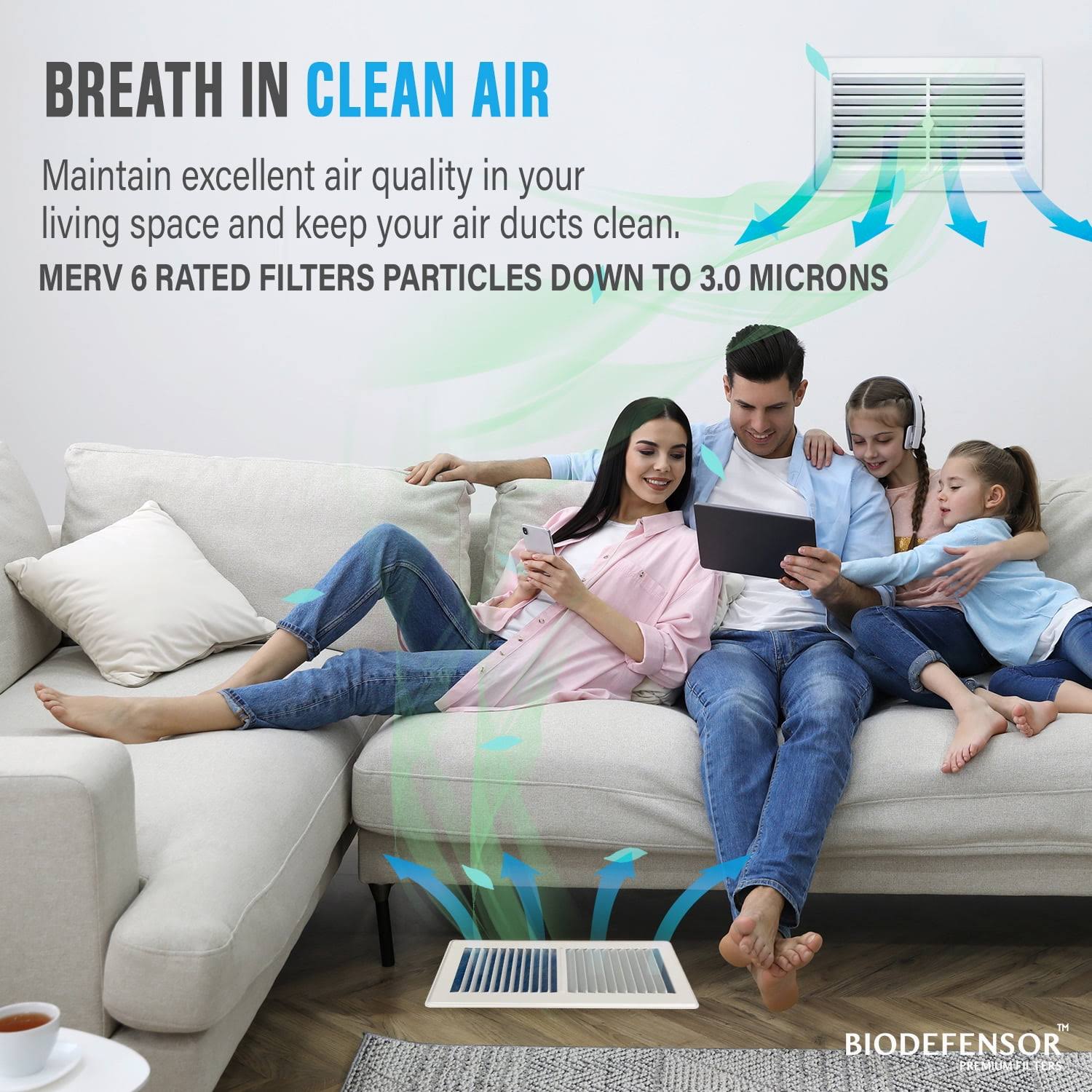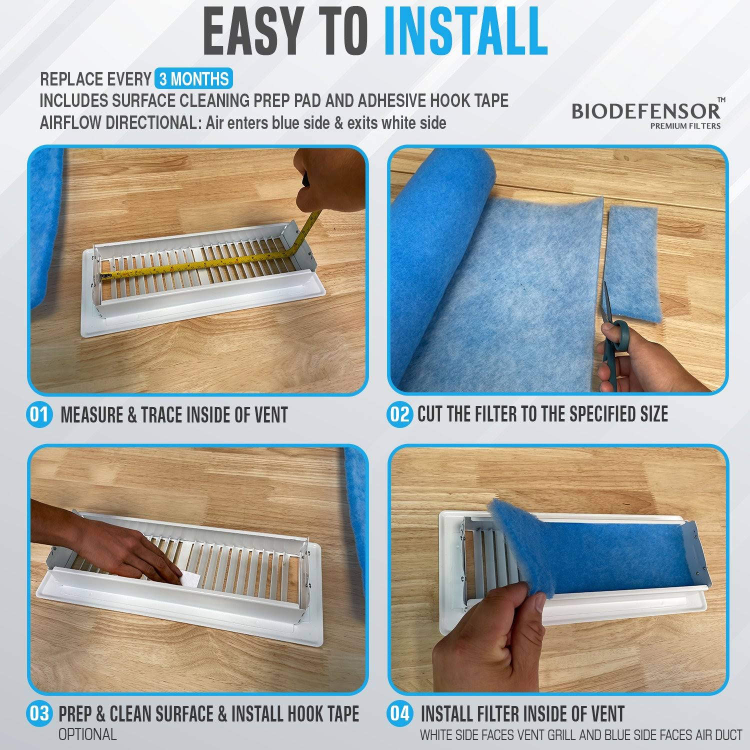 Biodefensor Air Vent Filter Kit- Made in USA Large 90"x20" MERV 6 Electrostatic Roll, Cut to Fit All Floor Registers, Grilles, Ceiling, Wall HVAC