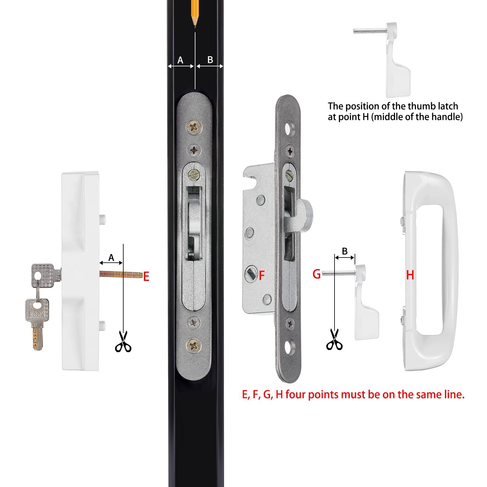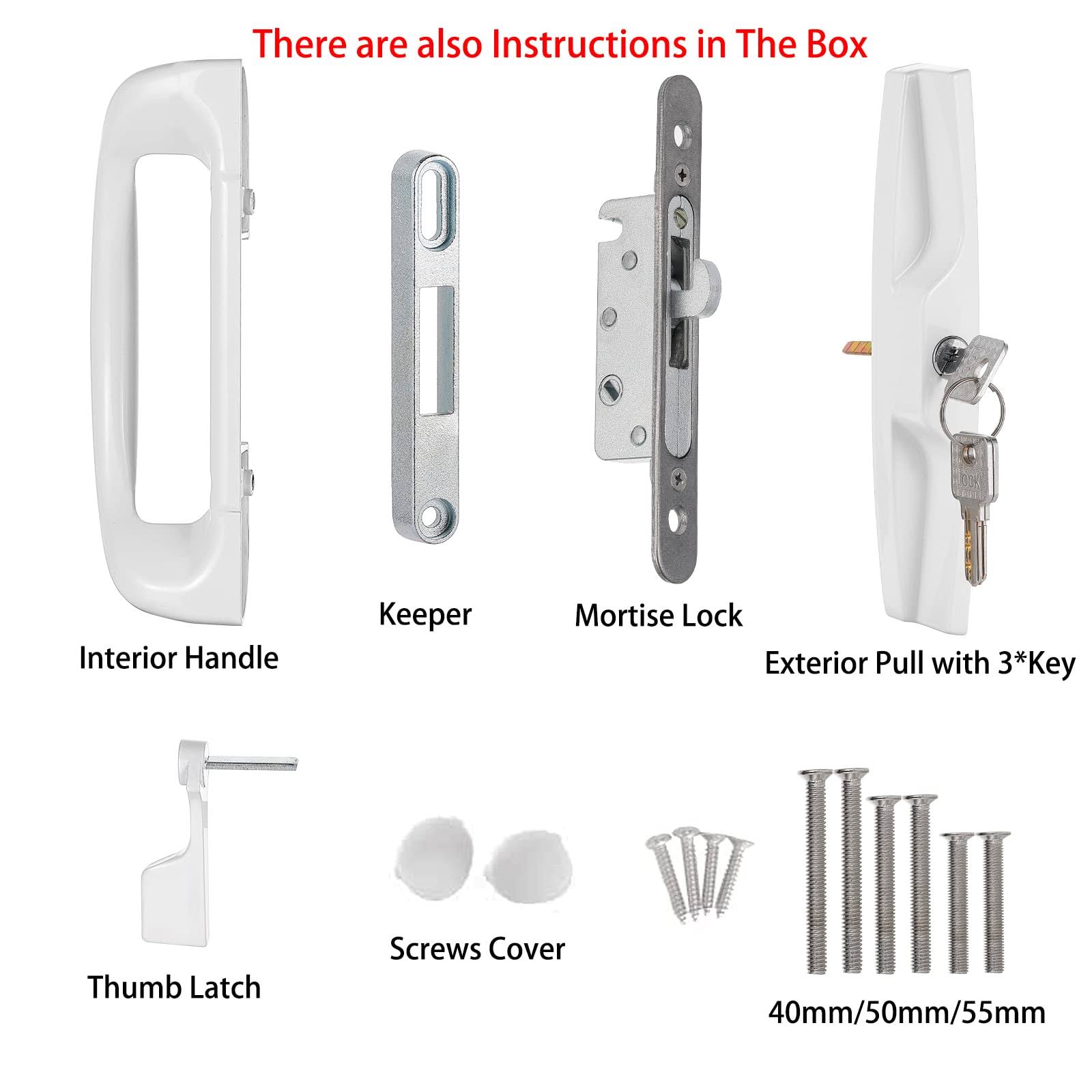 NAUBEA Sliding Glass Door Lock, Sliding Patio Door Handle Set with Mortise Lock/Key cylinder/faceplate/keeper, Sliding Door L