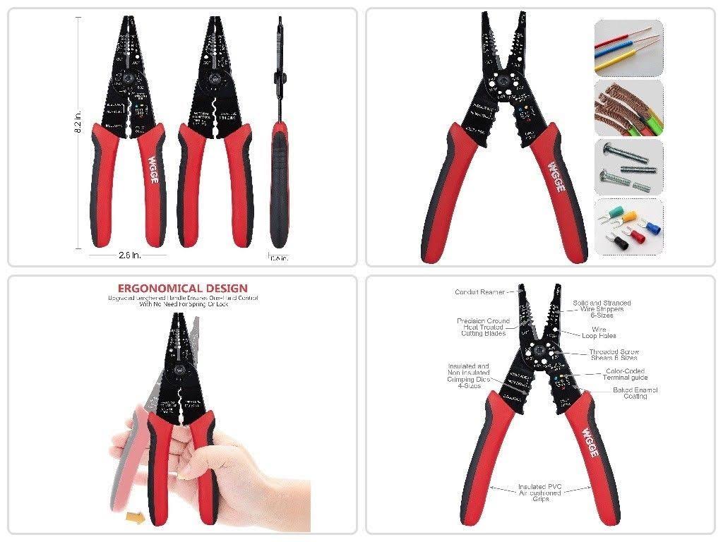 WGGE Wg-015 Professional 8-Inch Wire Stripper/Wire Crimping Tool, Wire Cutter, Wire Crimper, Cable Stripper, Wiring Tools and Multi-function Hand
