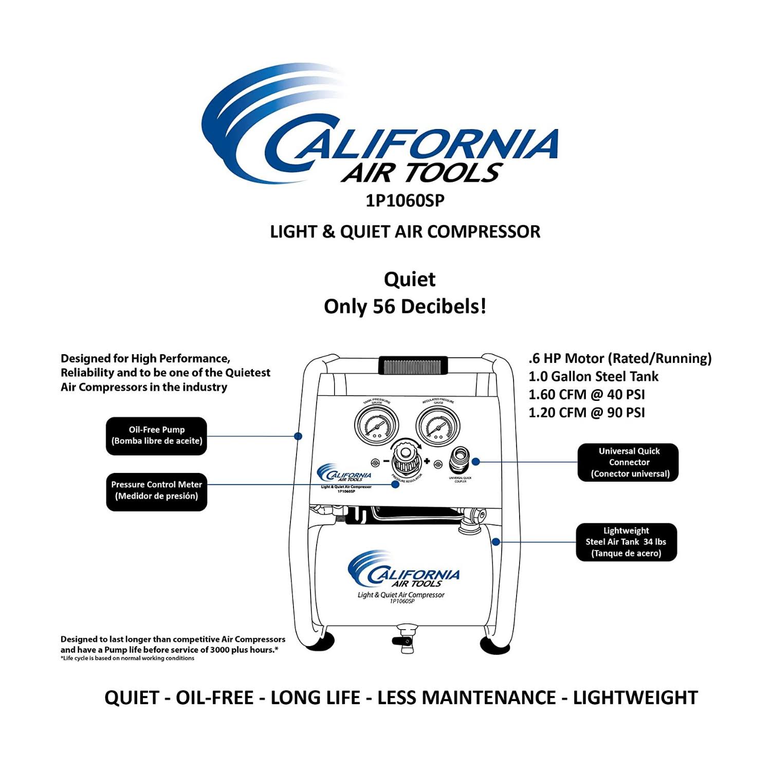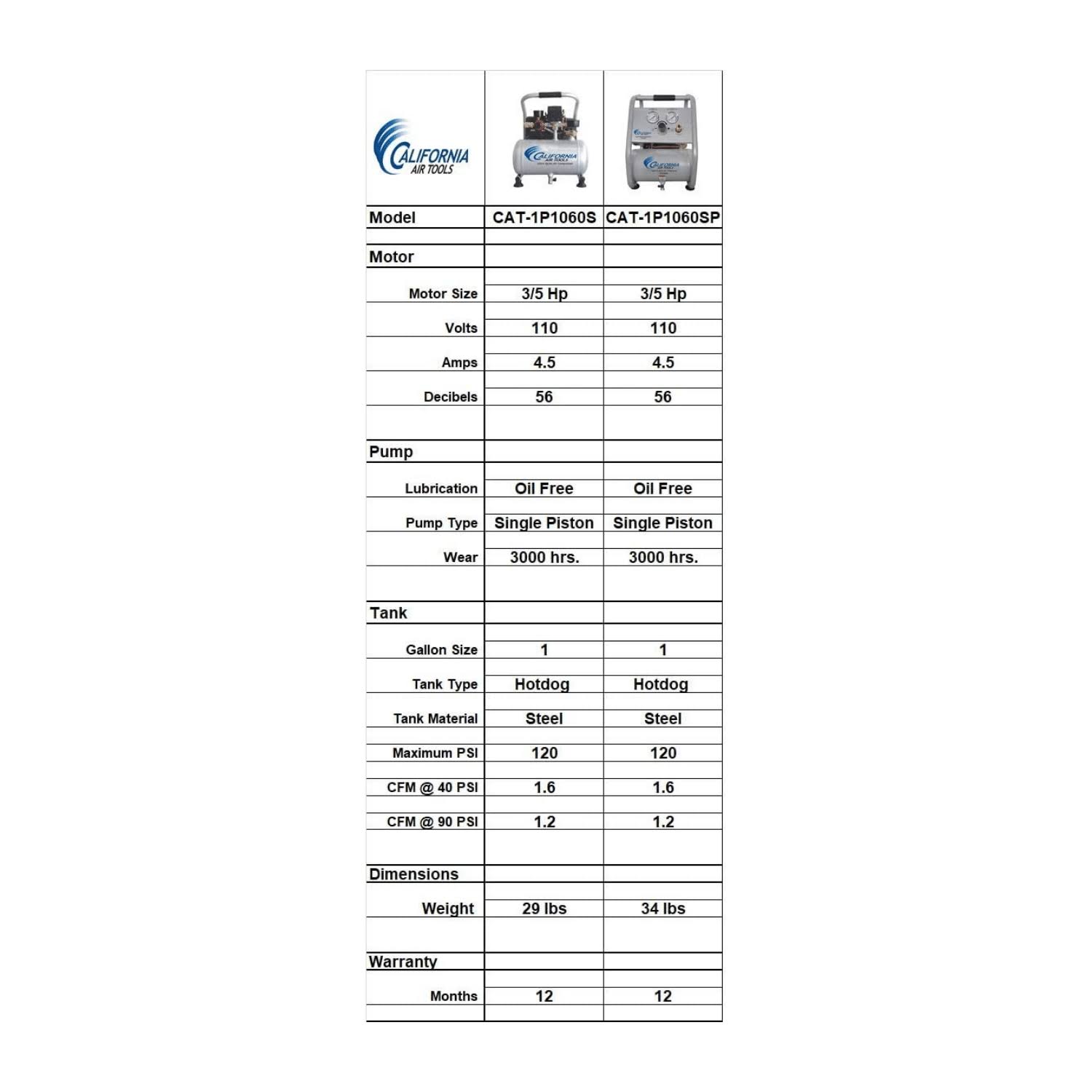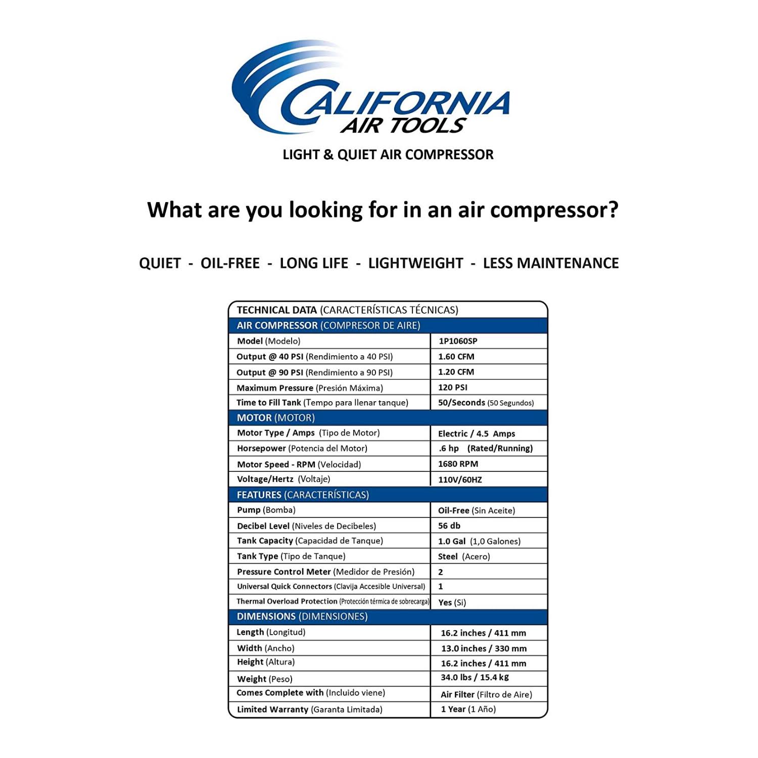 California Air Tools 1P1060SP Light & Quiet .6 HP 1.0 gal. Portable Air Compressor