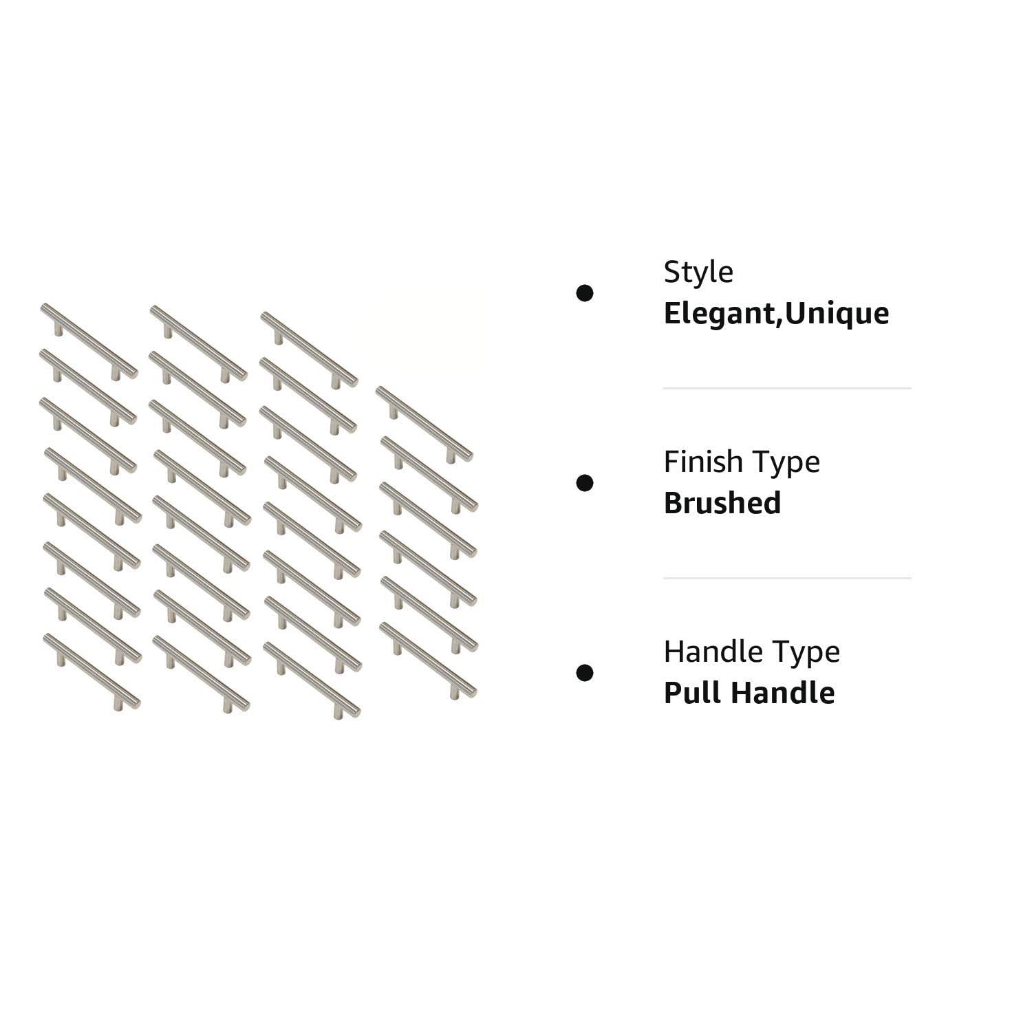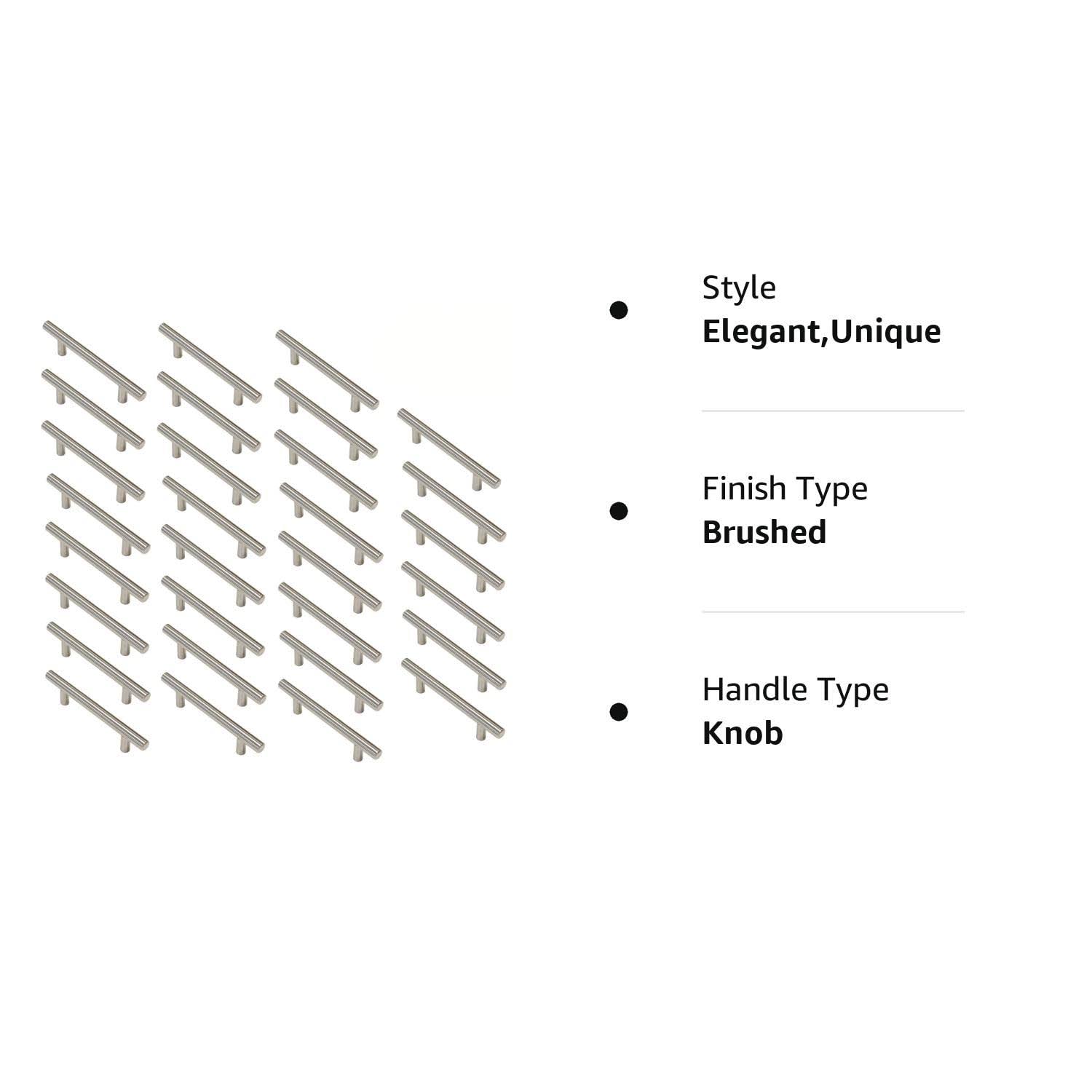 Aimyoo Cabinet Handles- Pack of 30 Stainless Steel Hollow Tube T Bar Drawer Pulls Cupboard Knob for Kitchen Furniture Hardware, Stainless Steel