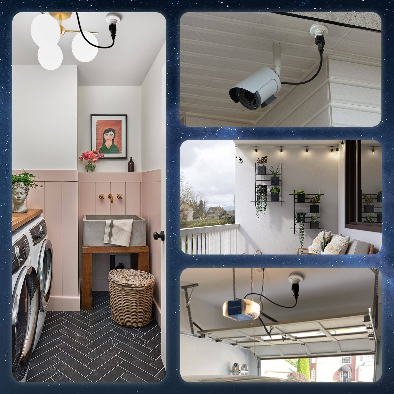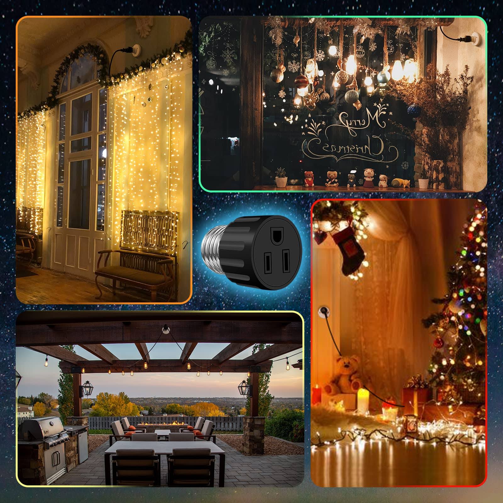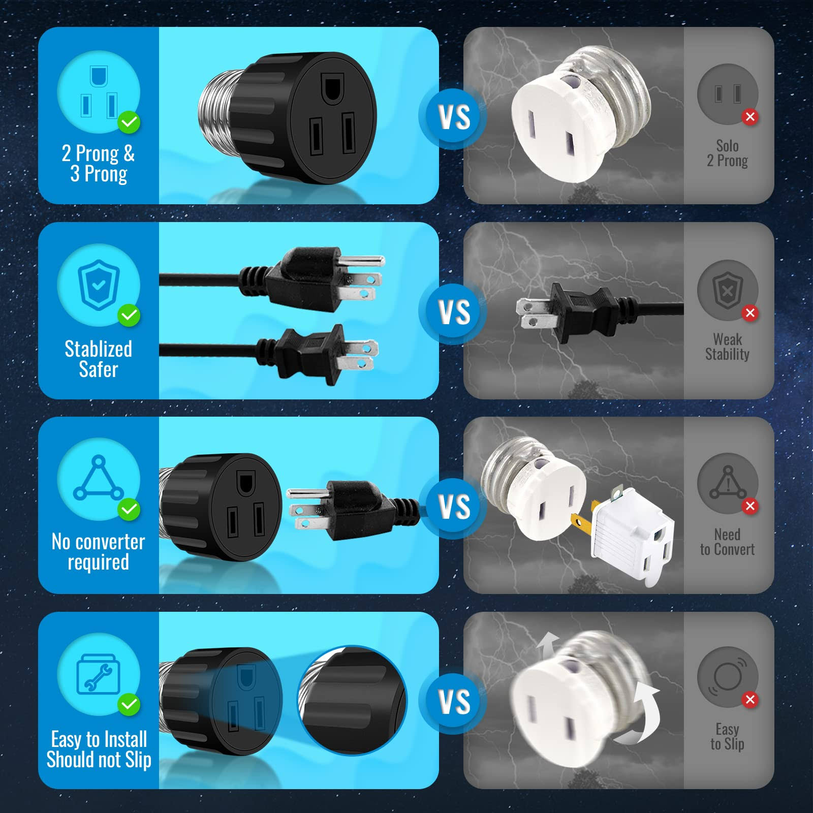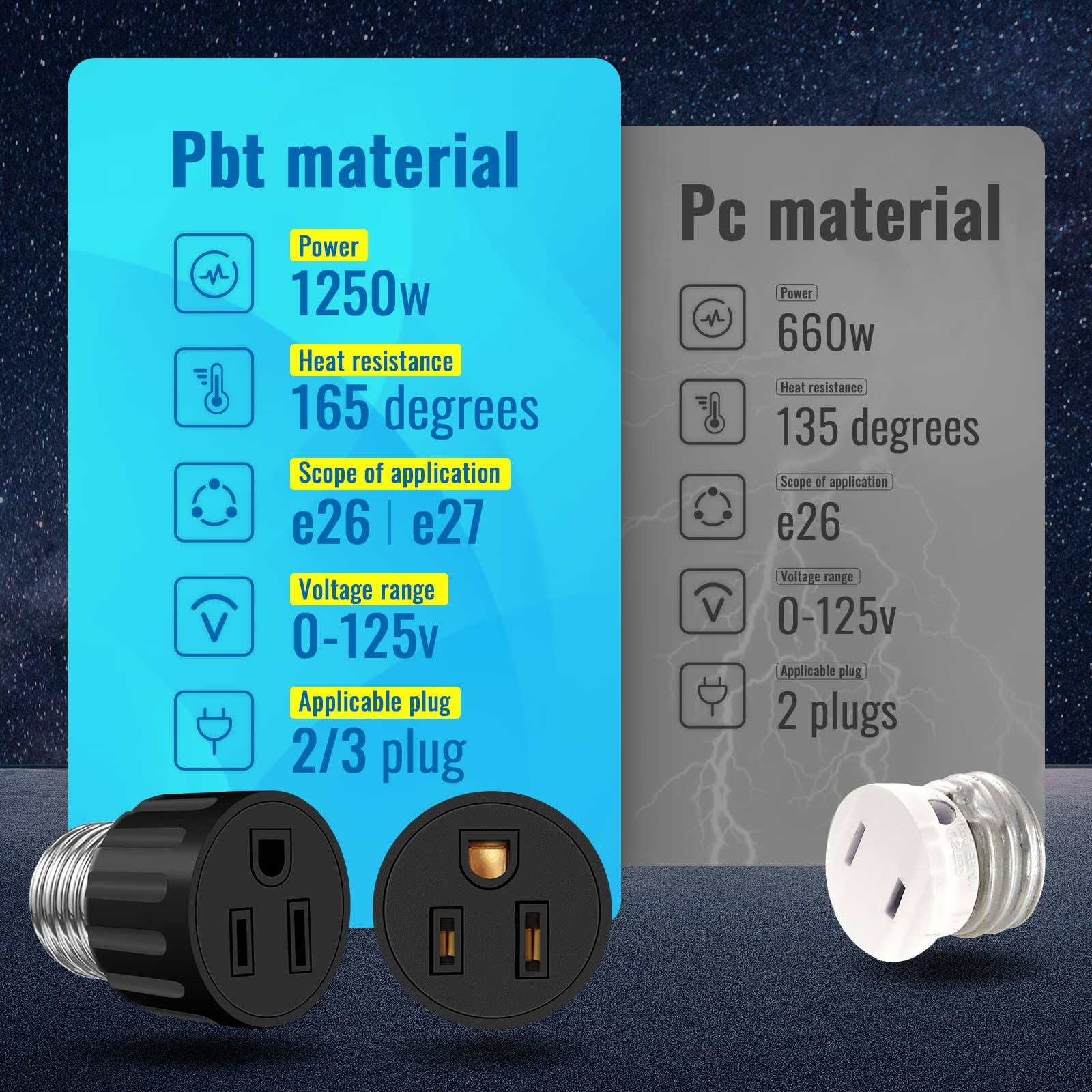 2 Packs ABORNI E26/E27 3 Prong Light Socket to Plug Adapter, Polarized Screw in Outlet for Light Socket Adapter Outlet 3Prong Light Bulb Socket