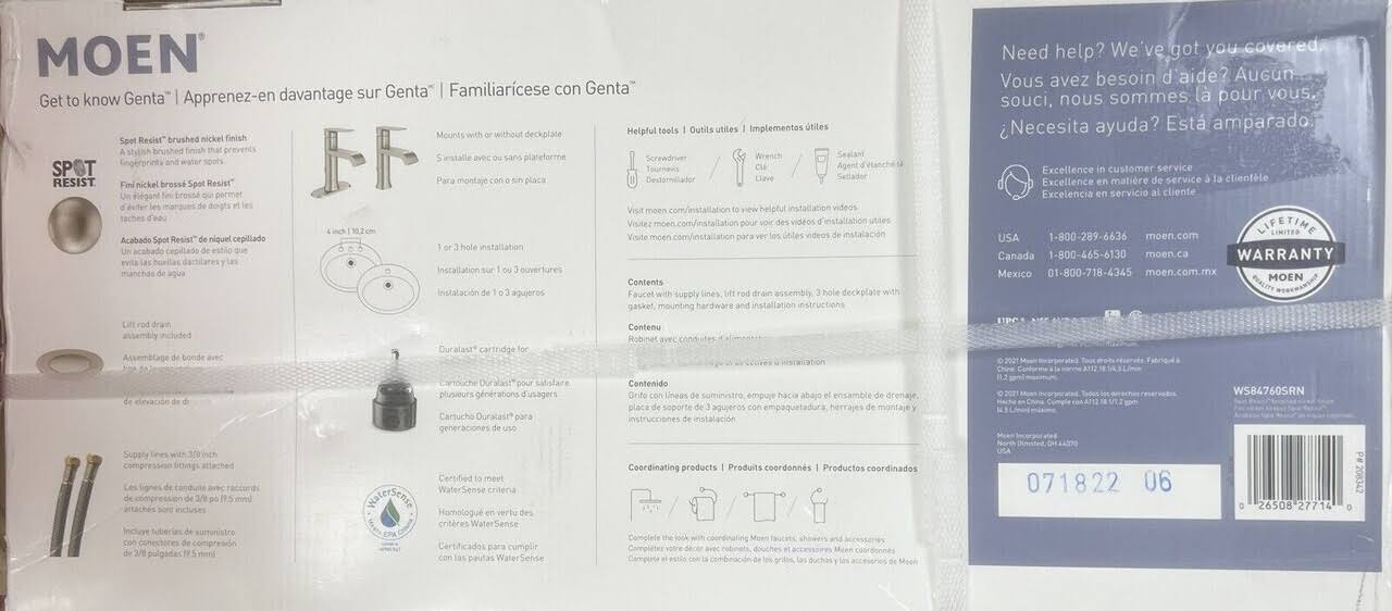 Moen Genta Single Hole Single-Handle Bathroom Faucet Spot Resist Brushed Nickel