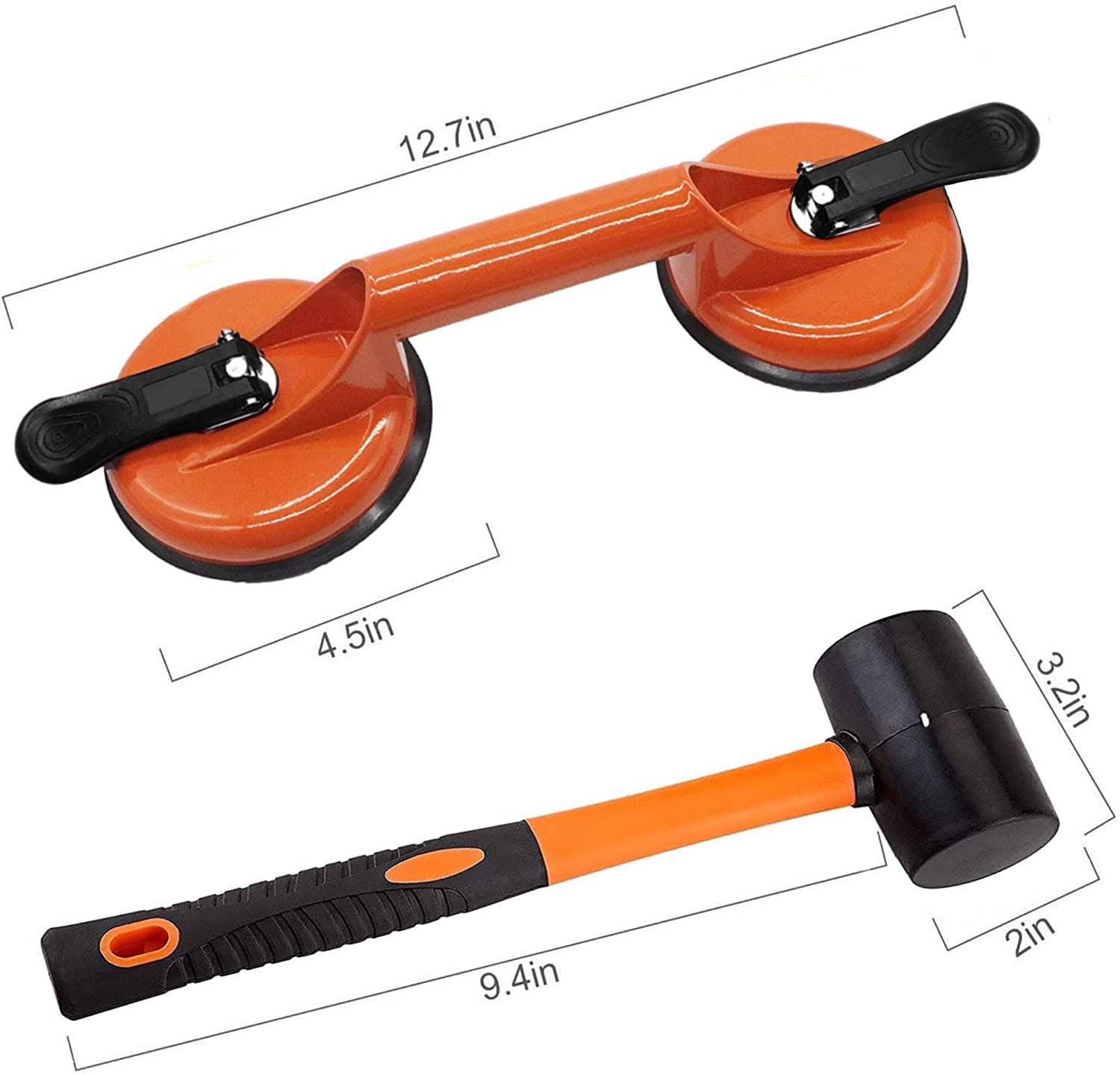 FCHO Floor Gap Fixer Tool for Laminate Floor Gap Repair Include Suction Cup and Mallet (Cant Use on Scraped Surface Floor)-Orange Kit