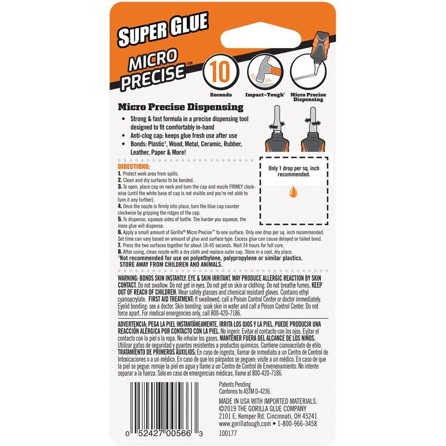 Gorilla Incredible Strong Super Glue, Micro Precise- 5 g