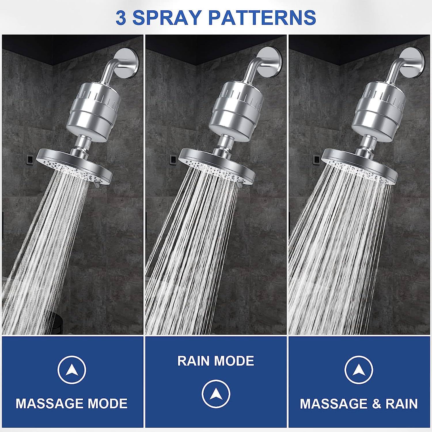 Filtered Shower Head, 20 Stage Shower Head Filter for Hard Water, Todsta 3 Modes