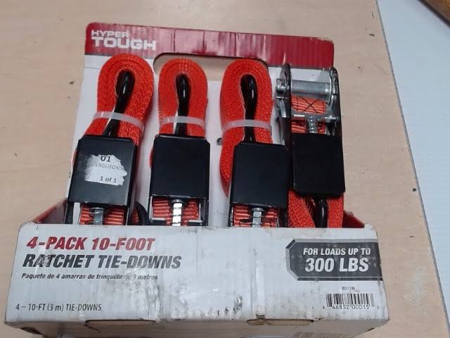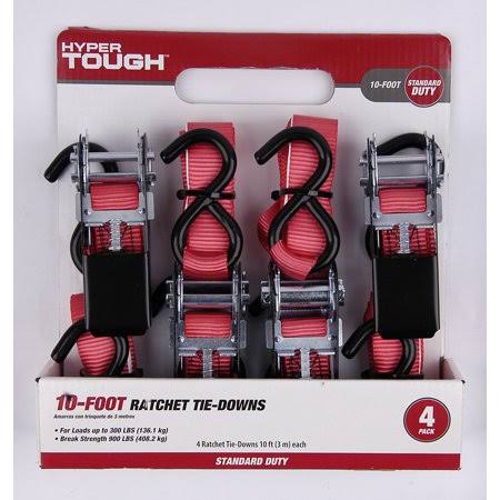 Hyper Tough 10-Foot Ratchet Tie-Downs, Standard Duty, 4 Pack