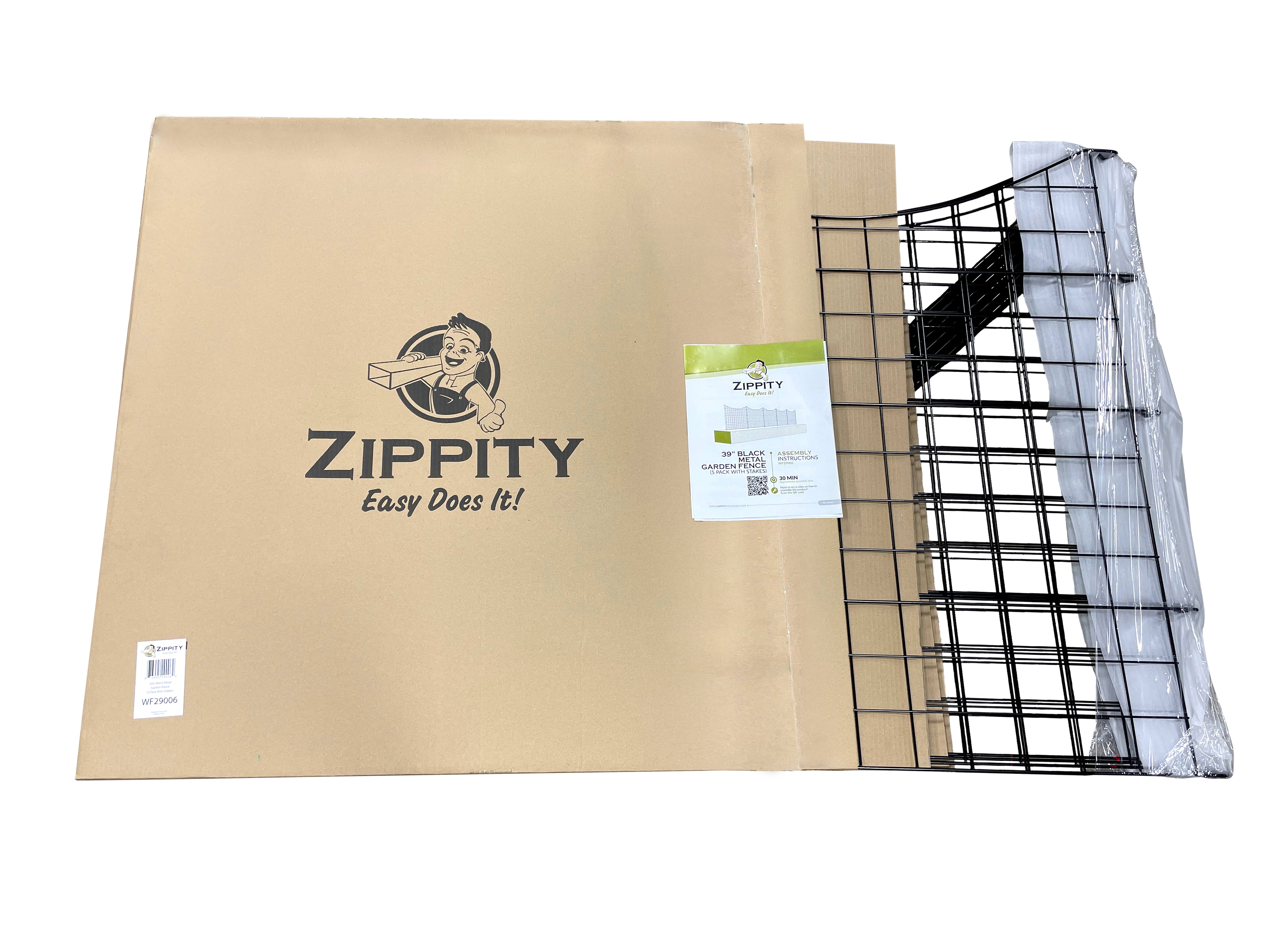 Zippity Outdoor Products 39"H No Dig Decorative Metal Garden Fence (5 Panels, Black)