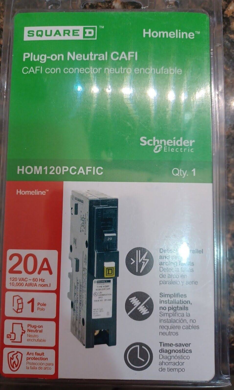 Square-D HOM120PCAFIC Homeline Single Pole Circuit Breaker, 20A