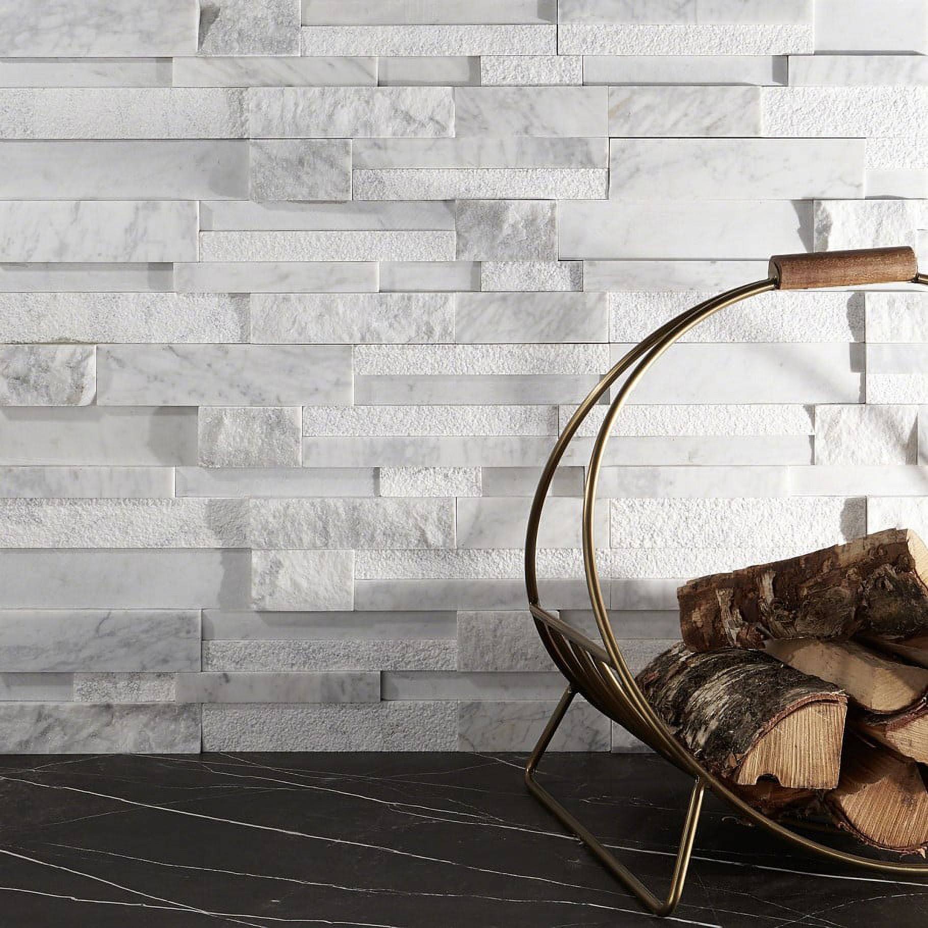 Ivy Hill Tile Mountainstone Pure White Marble 24 in. x 8 in. Mosaic Wall Tile, Size: Sheet