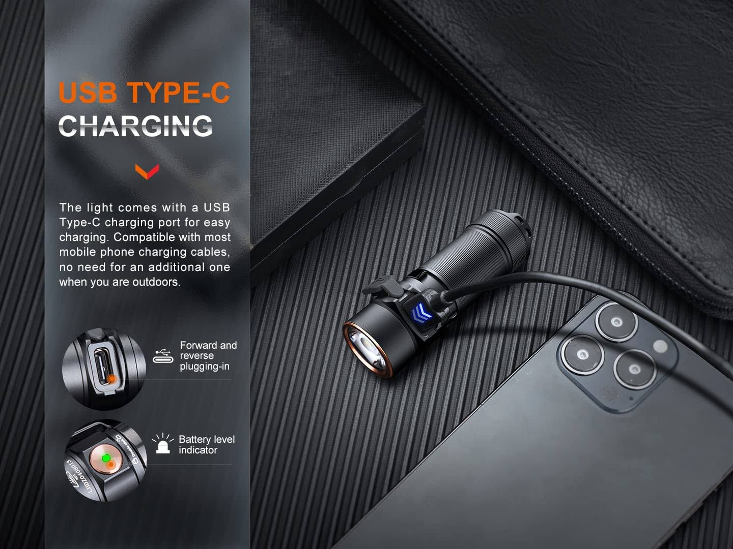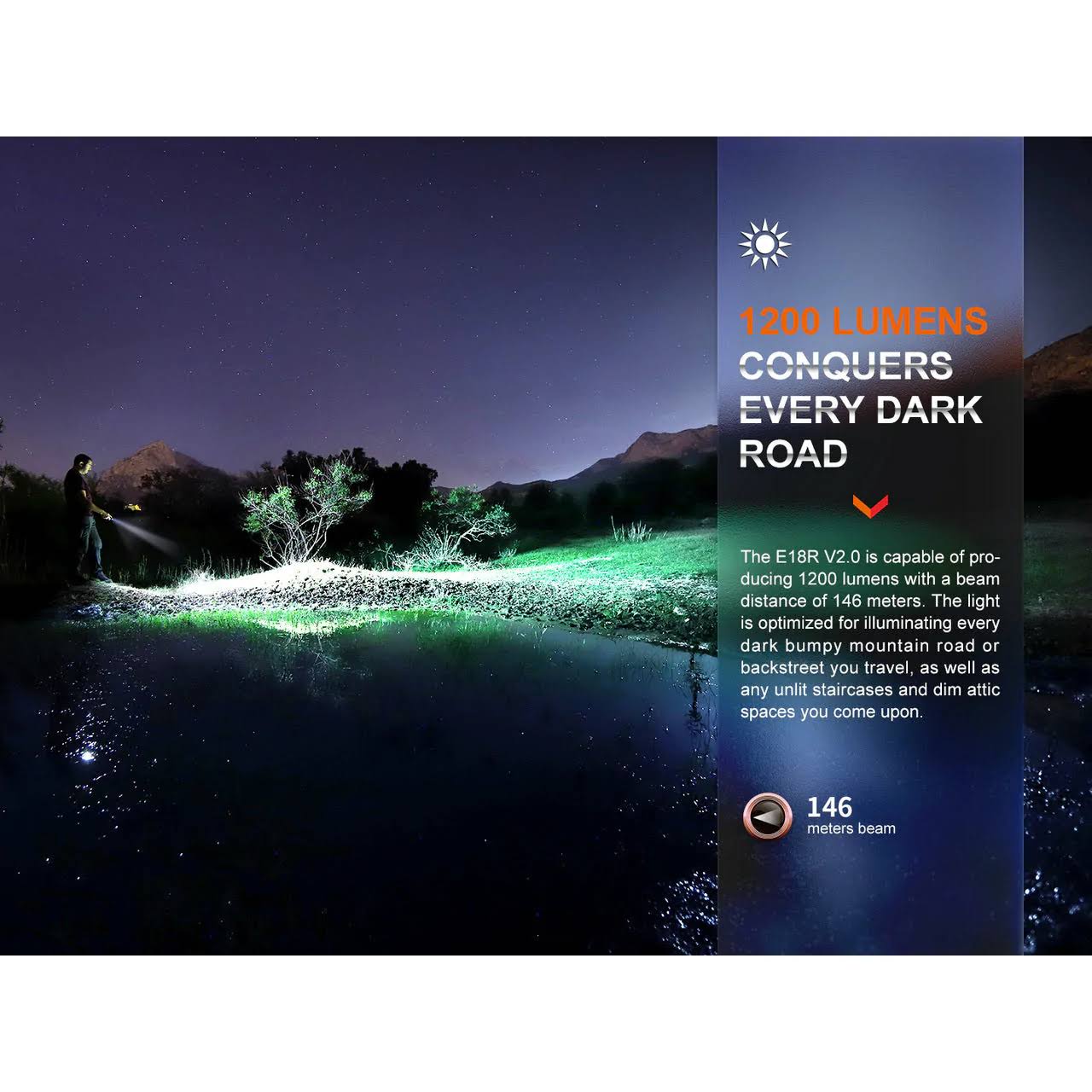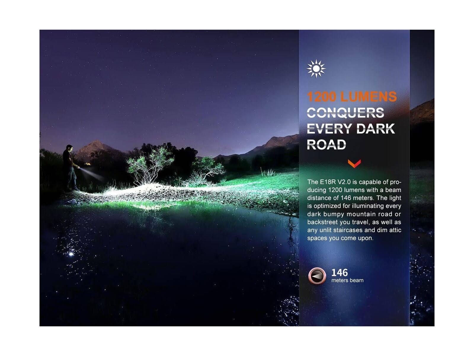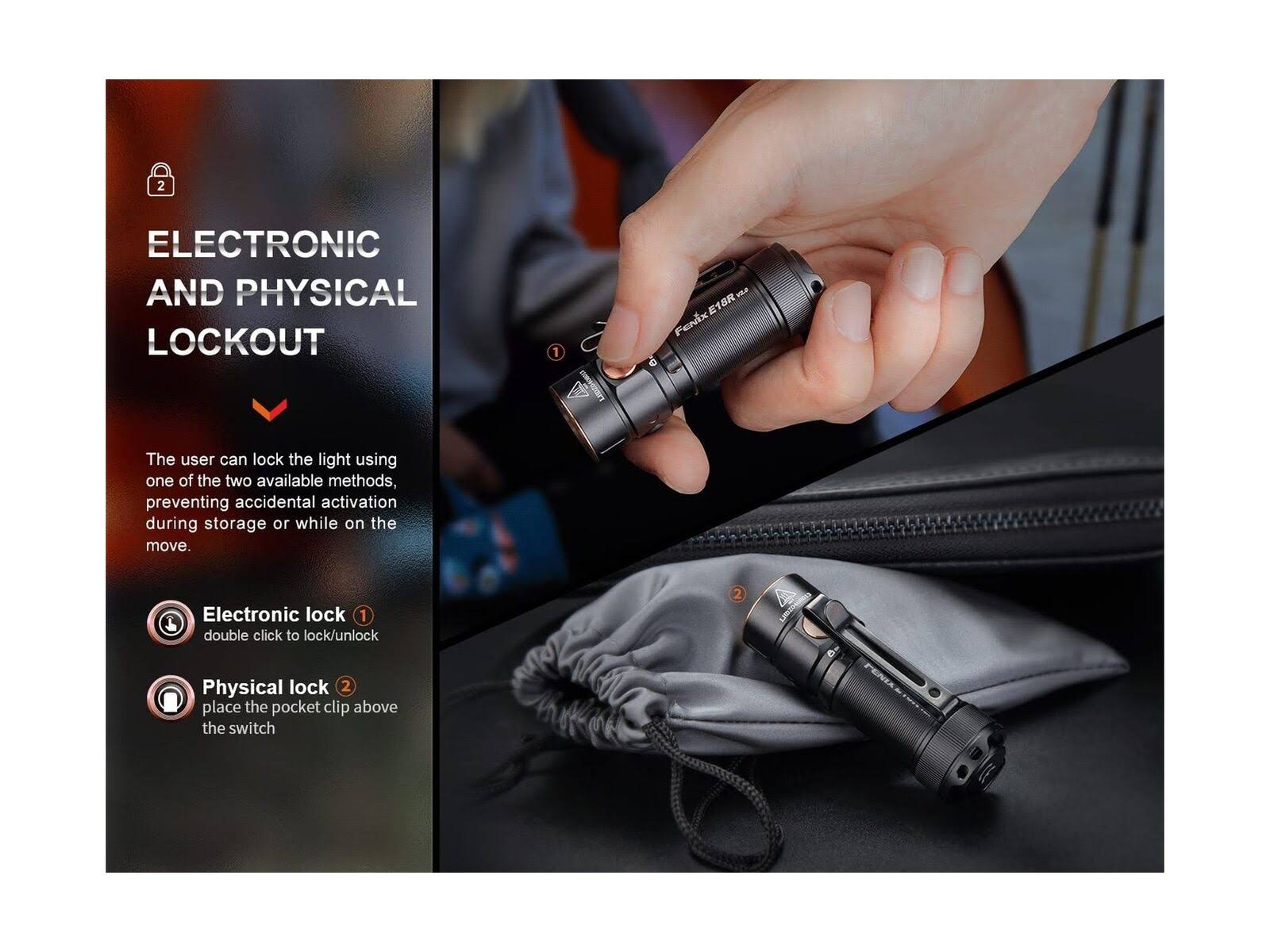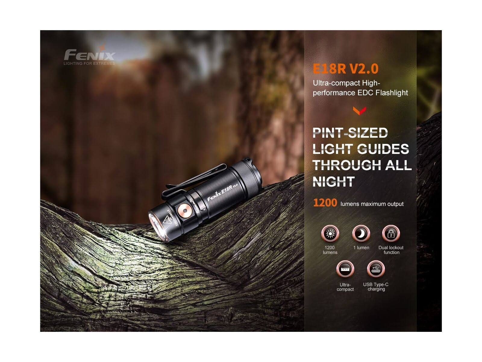 Fenix E18R V2 1200 Lumens EDC Rechargeable Flashlight with EdisonBright Holster Bundle
