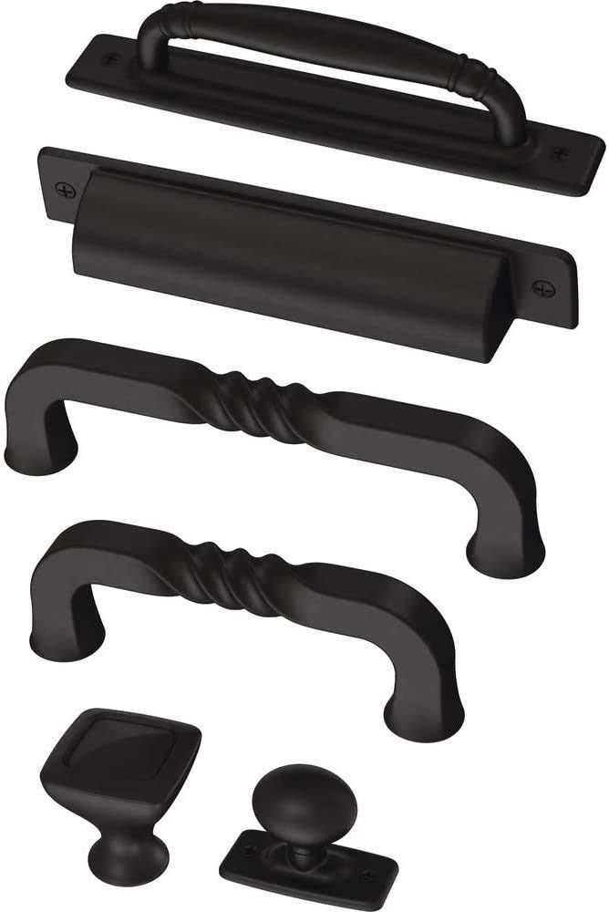 Liberty Hardware P28198K-FB-C Iron Craft 1 inch Oval Cabinet Knob with Backplate- Matte Black