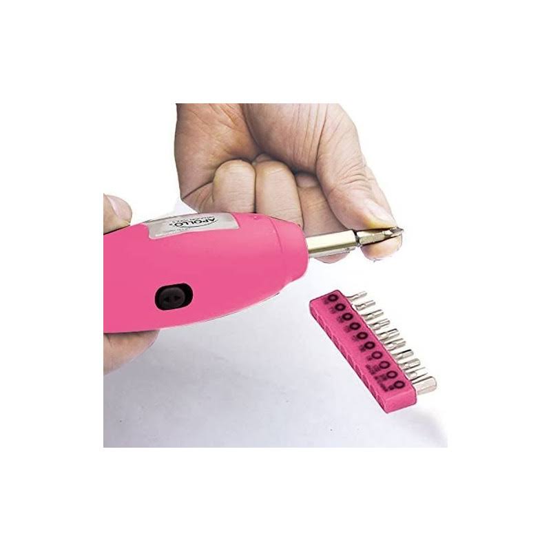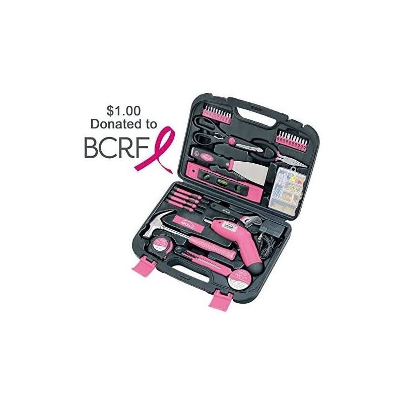 Apollo Tools Dt0773n1 135 Piece Complete Household Tool Kit with 4.8 Volt Cordless Screwdriver and Most Useful Hand Tools and DIY Accessories Pink