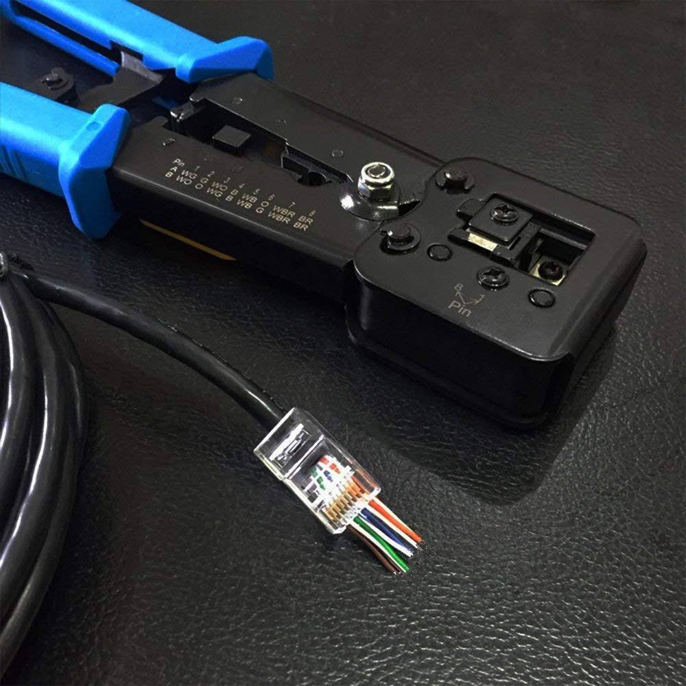 PETECHTOOL RJ45 Crimping Tool Ethernet Crimper for Cat6 Cat5 Cat5e RJ45 Pass Through Connectors and Rj12 Ends Comes with 20pcs RJ45 Cat6 Connectors