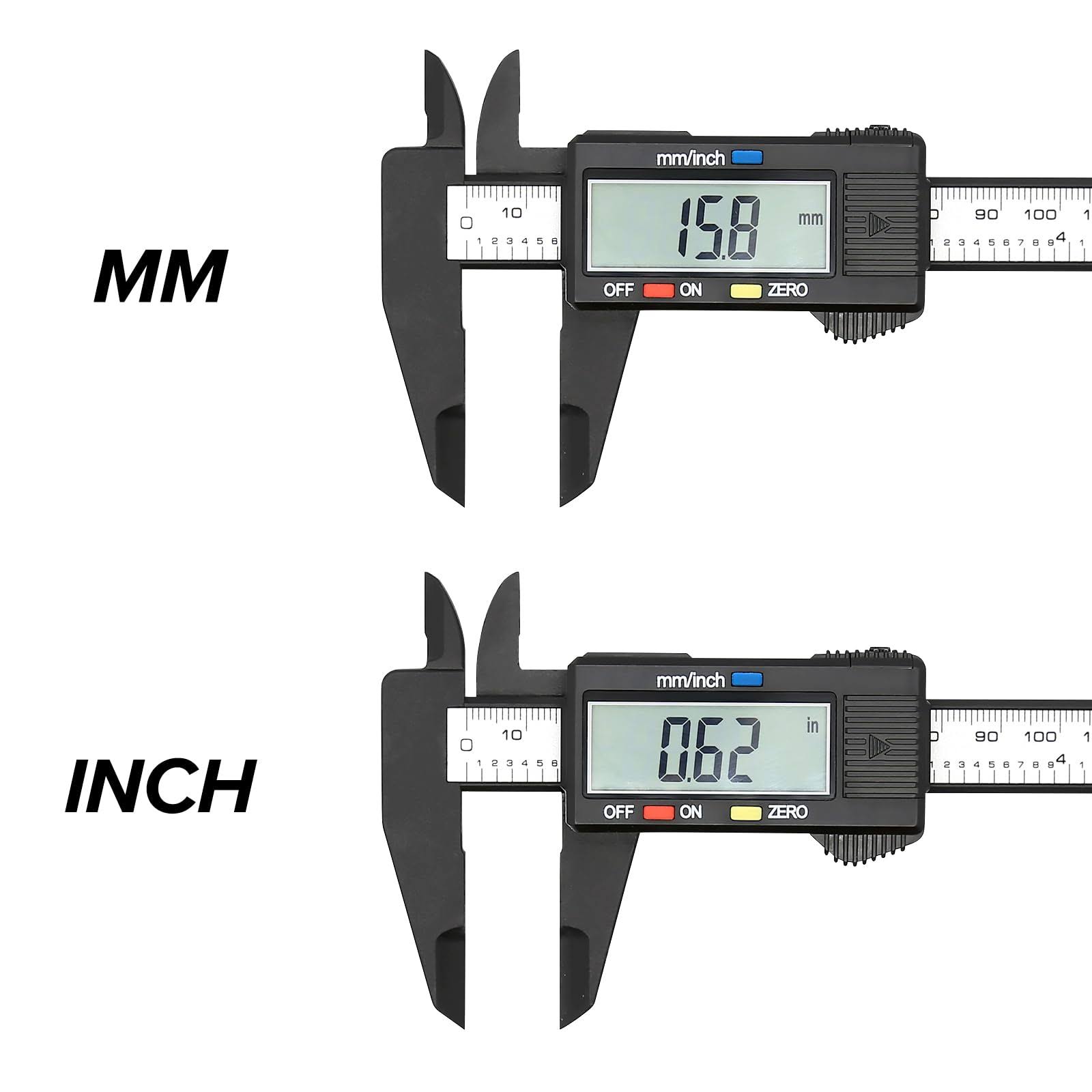 Vizbrite Electronic Digital Caliper, Plastic Vernier Caliper, Caliper Measuring Tool with Inch/Millimeter Conversion, Extra Large LCD Screen, 0-6 inch