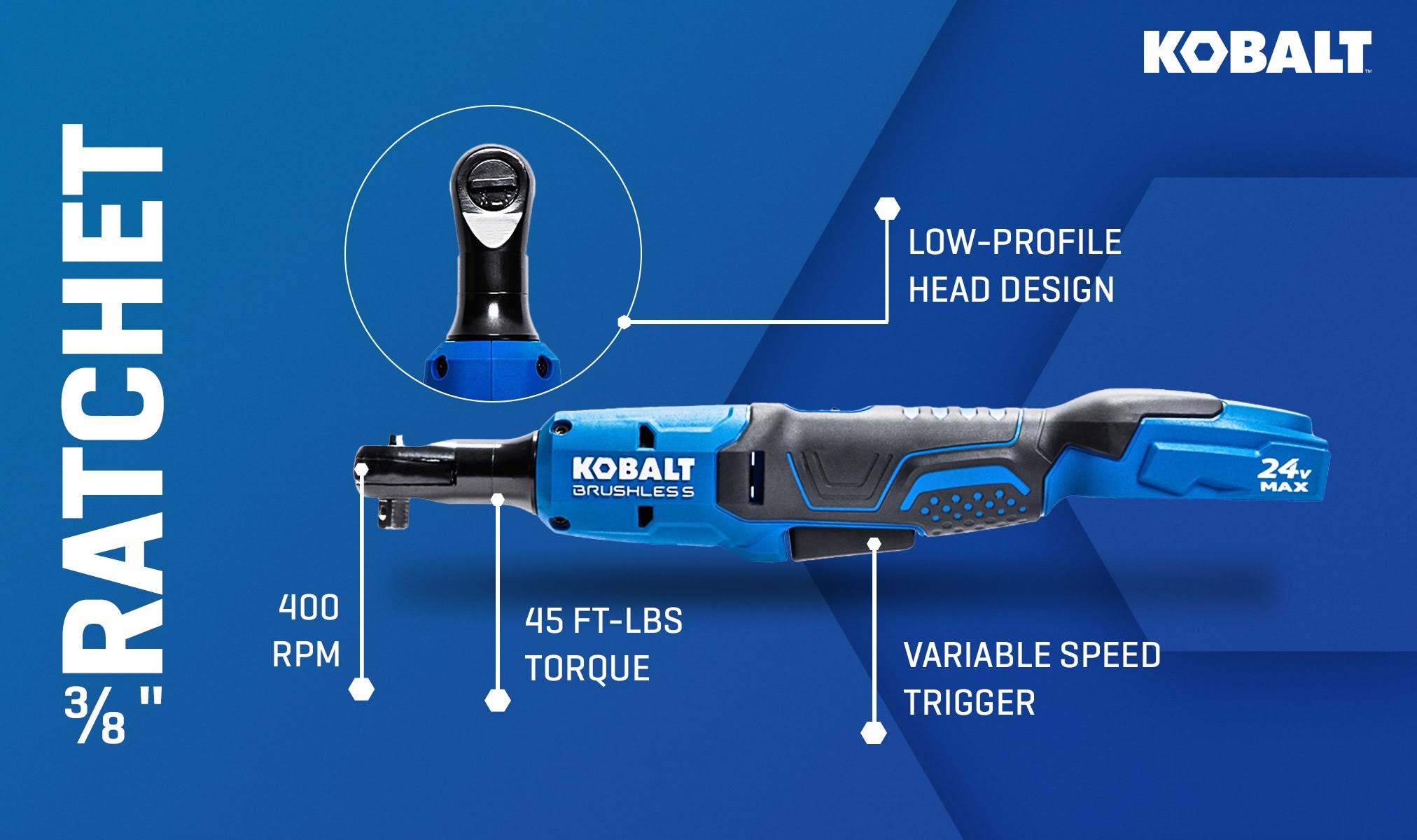 Kobalt 24-Volt Max Variable Speed Brushless 3/8-in Drive Cordless Ratchet Wrench (Bare Tool)
