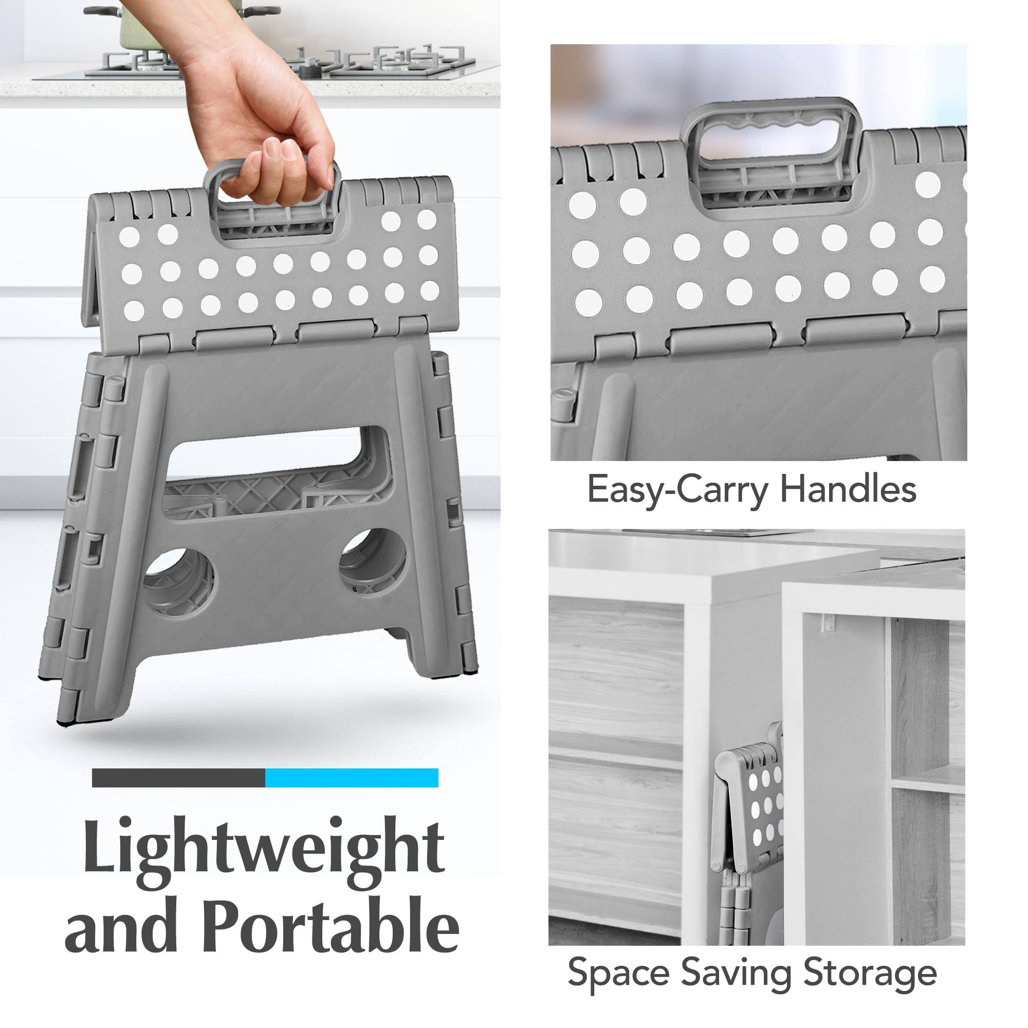 Folding Step Stool 13 inch- The Anti-Skid Step Stool Is Sturdy to Support Adults and Safe Enough for Kids. Opens Easy with One Flip. Great for