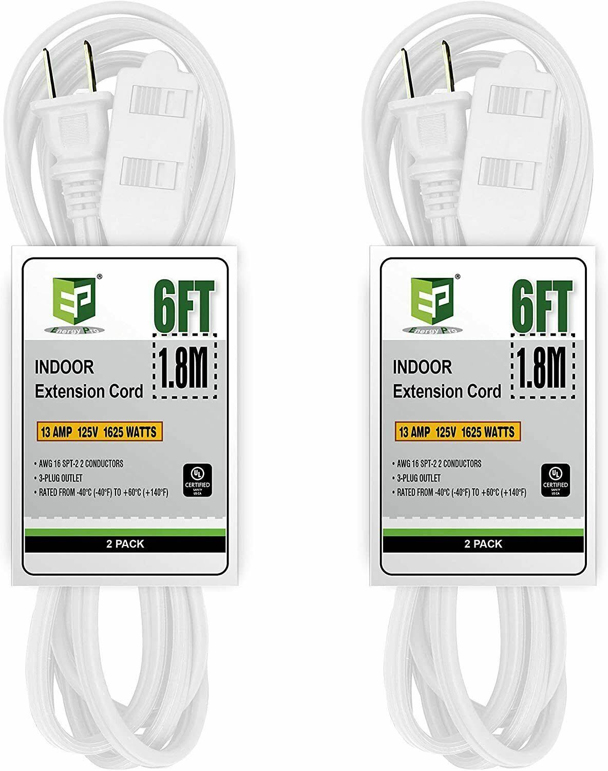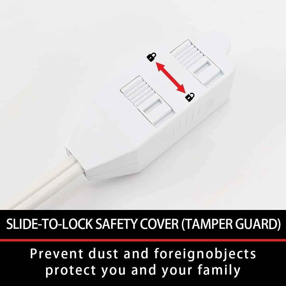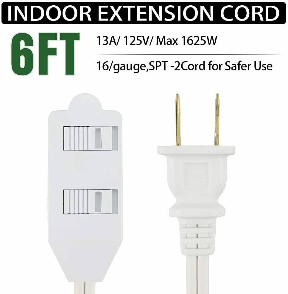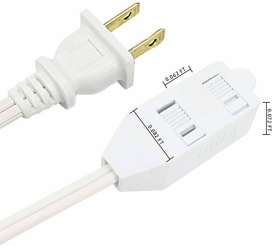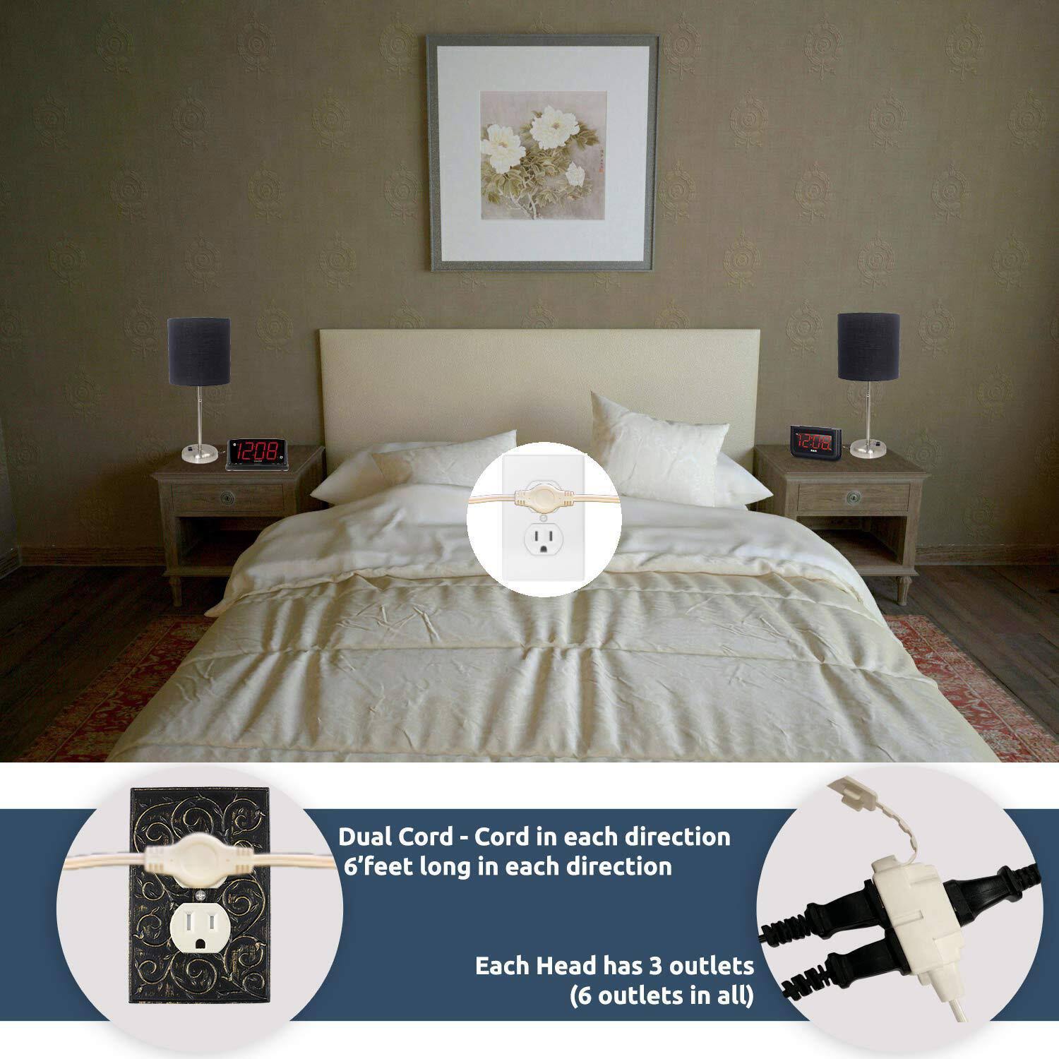 Twin Extension Cord Power Strip- 12 Foot Cord- 6 Feet on Each Side- Flat Head (Wall Hugger) Outlet Plug- 6 Polarized Outlets with Safety Cover