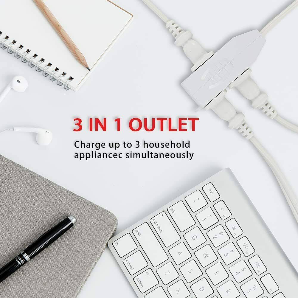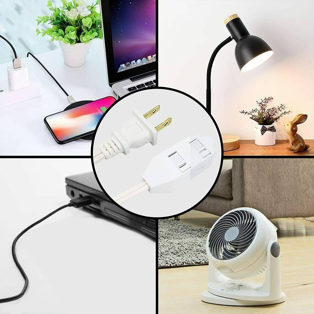 W4W Twin Extension Cord Power Strip- 24 Foot Cord- 12 Feet on Each Side- Flat Head (Wall Hugger) Outlet Plug- 6 Polarized Outlets with Safety