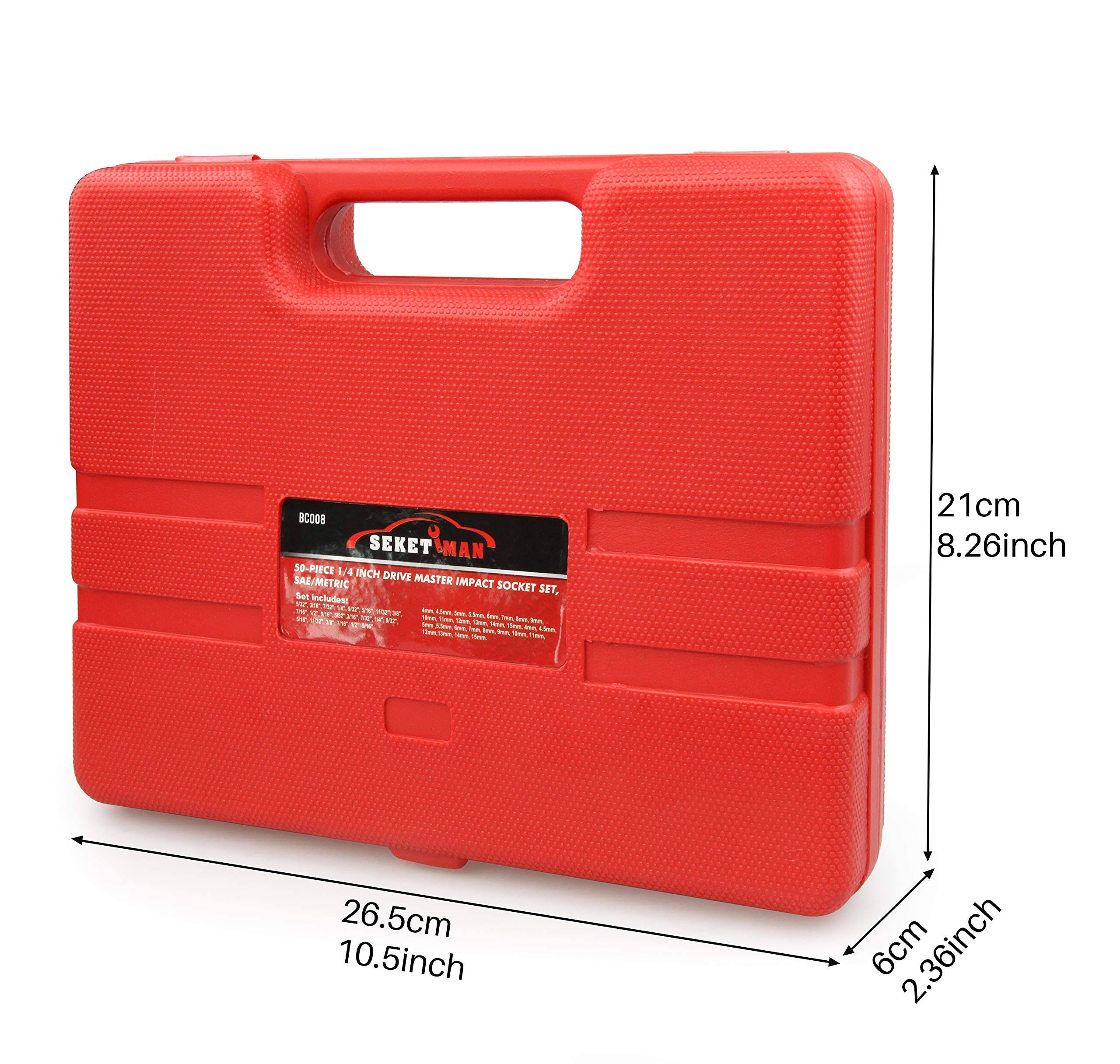 SEKETMAN 50-Piece 1/4" inch Drive Deep and Shallow Impact Socket Set, SAE/Metric(5/32-Inch to 9/16-Inch and 4-15mm),CR-V-50BV30