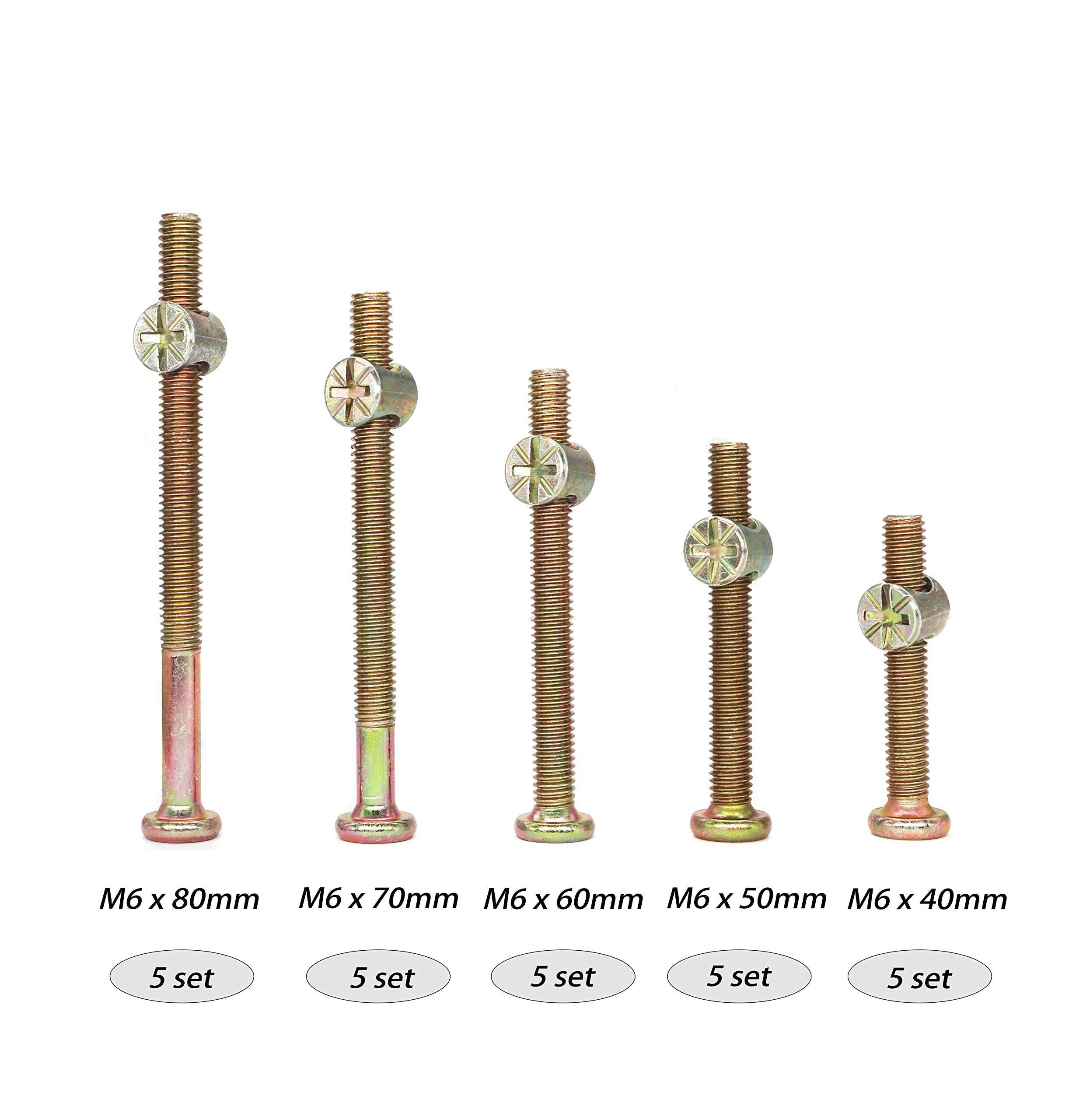 Baby Bed Crib Screws Hardware Replacement Kit, cSeao 25-set M6x40mm/ 50mm/ 60mm/ 70mm/ 80mm Hex Drive Socket Cap Screws