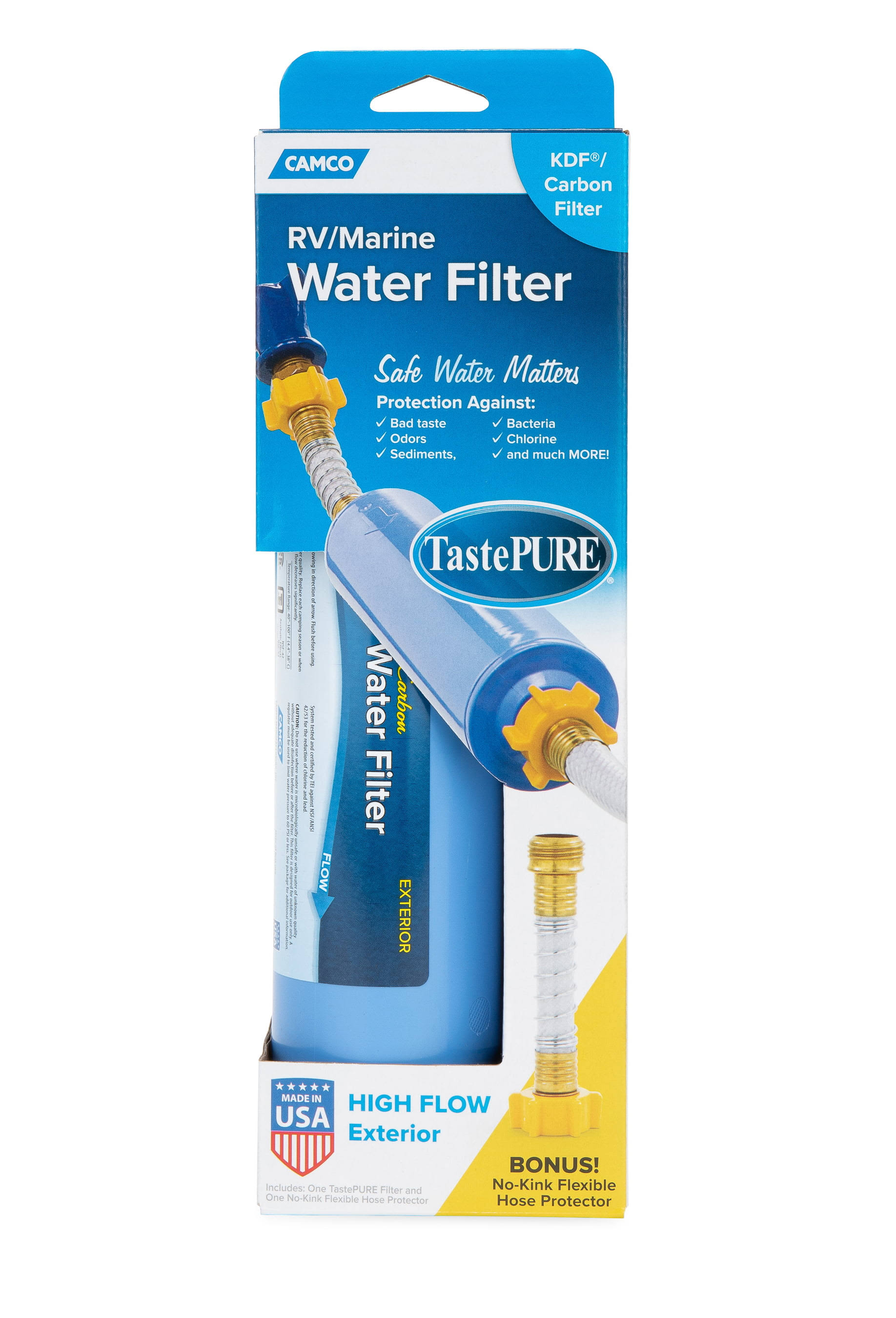 Camco TastePURE RV Water Filter with Flexible Hose Protector (40043)
