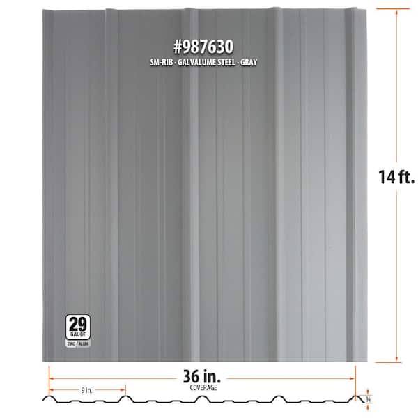 Gibraltar Building Products 14 ft. SM-Rib Galvalume Steel 29-Gauge Roof/Siding Panel in Gray 987630