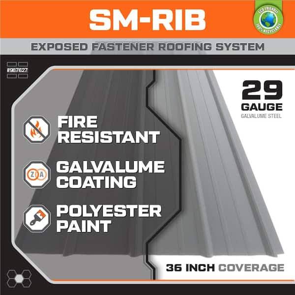 Gibraltar Building Products 987627 8 ft. SM-Rib Galvalume Steel 29-Gauge Roof/Siding Panel in Gray