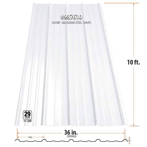 Gibraltar Building Products 10 ft. SM-Rib Galvalume Steel 29-Gauge Roof/Siding Panel in White 987610