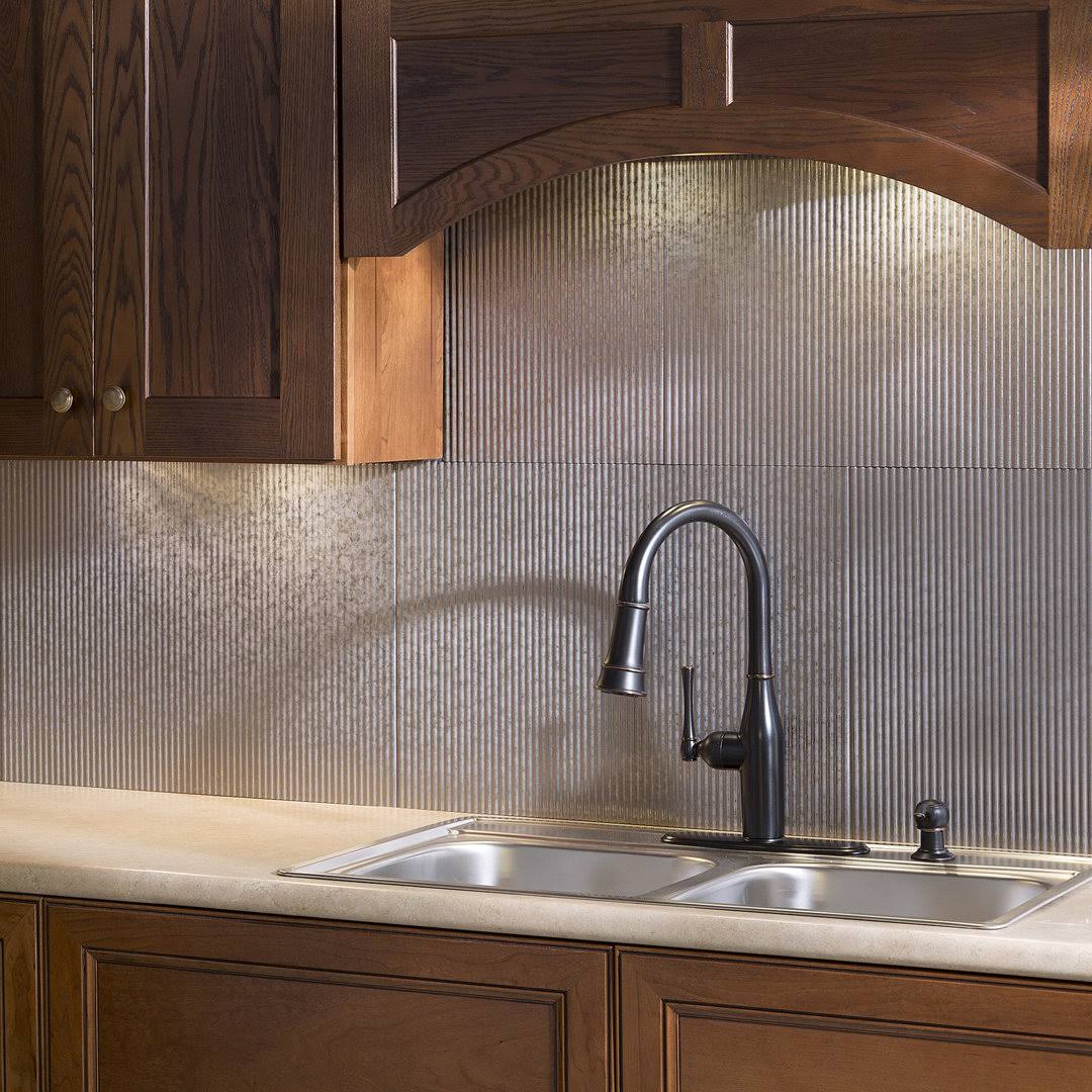 Fasade 18in x 24in Rib Galvanized Steel Backsplash Panel (5 Pack)