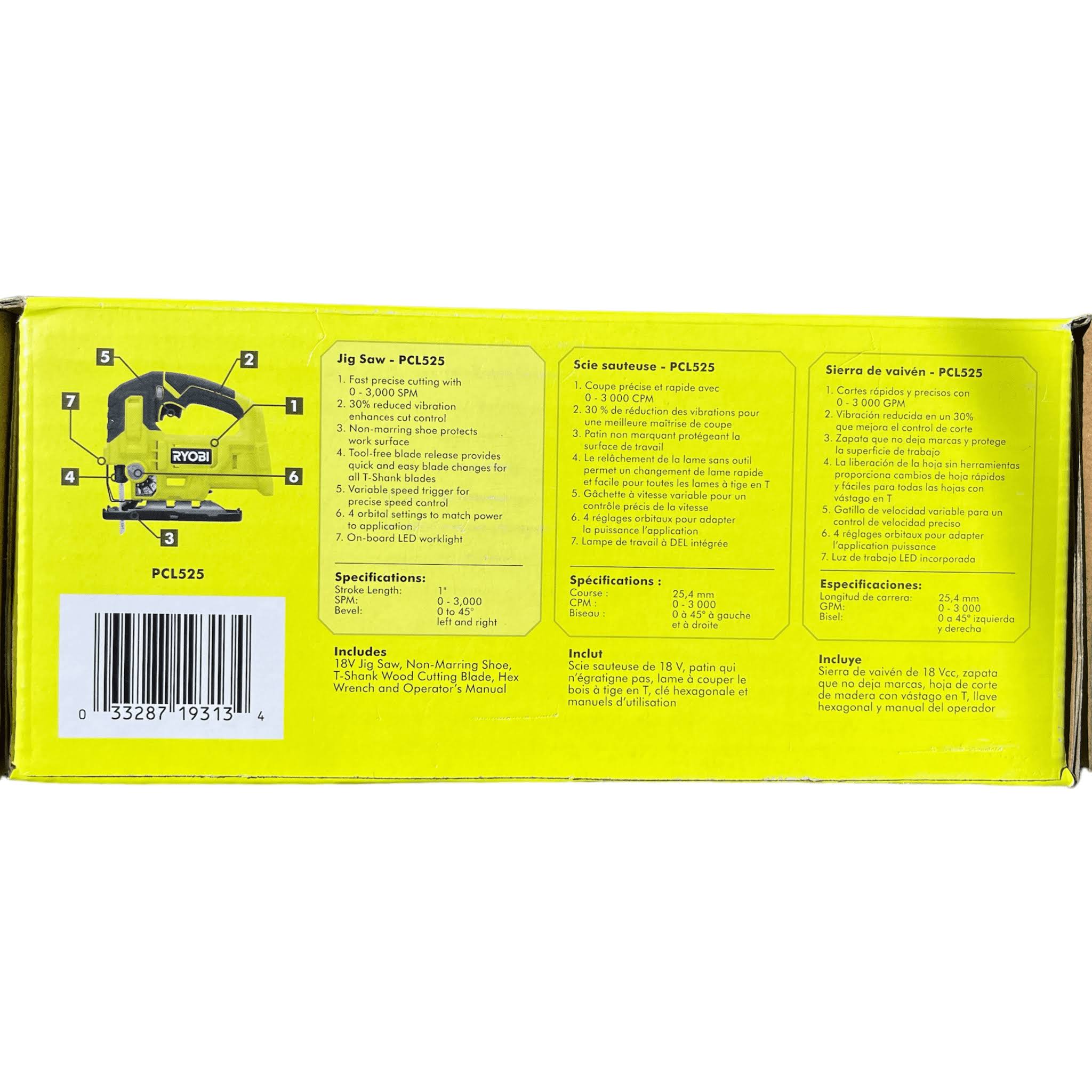 Ryobi One+ 18V Cordless Jig Saw (Tool Only) 18 Volt, PCL525B, Green