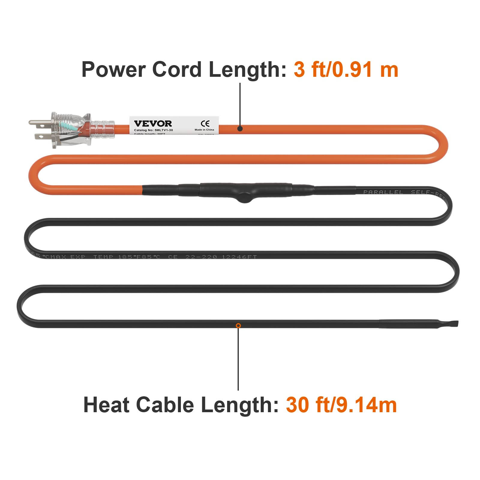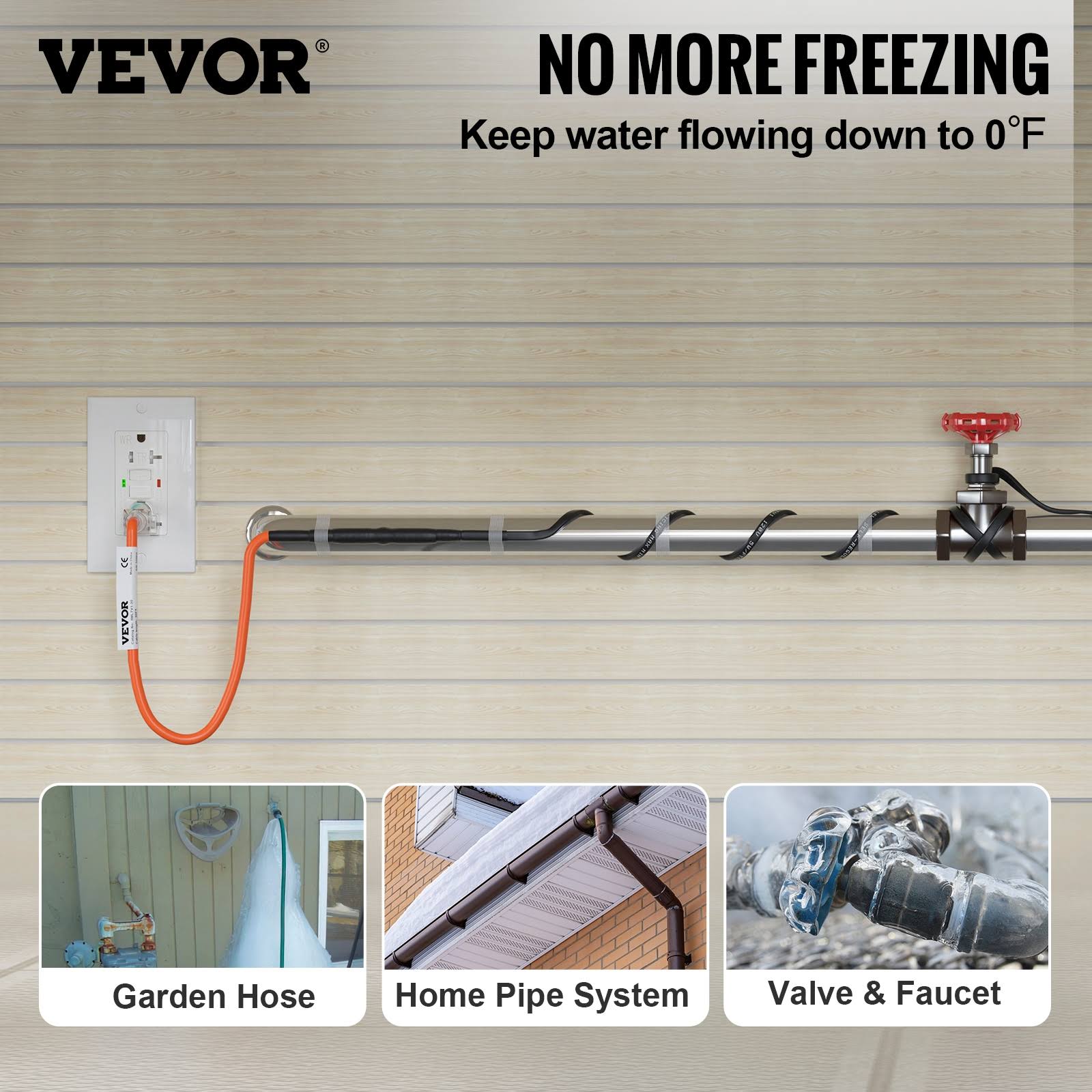 VEVOR Self-Regulating Pipe Heating Cable with Built-in Thermostat 30 Feet