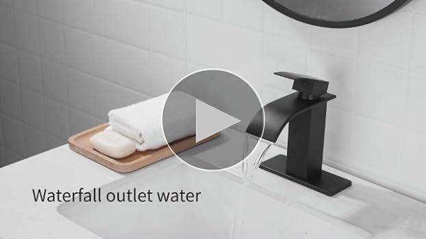 FRANSITON Black Waterfall Bathroom Faucet Lavatory Single Handle 1 or 3 Hole Bathroom Sink Faucet Washbasin Faucet with Deck and Pop-Up Drain