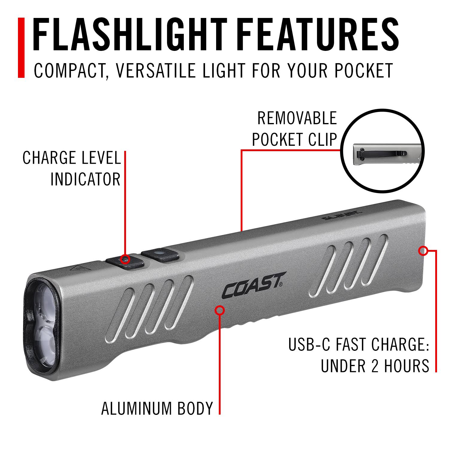 Coast Slayer LED Flashlight | Fixed Focus Beam | 1150 Lumens | Aluminum | Lifetime Warranty | Dust Resistant | Pocket Size