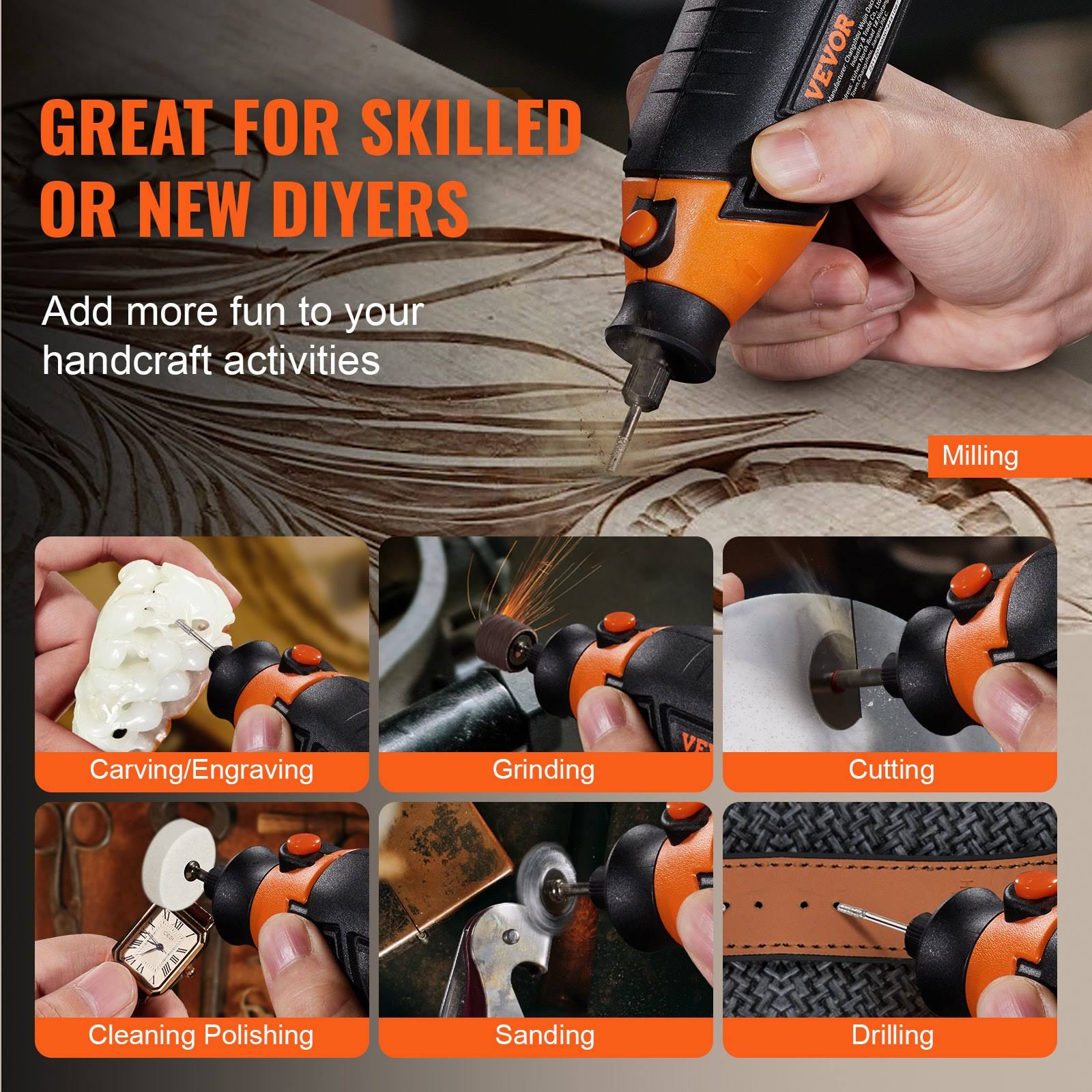 VEVOR Rotary Tool Kit 186PCS, Power Rotary Tools 8000-35000 RPM Variable Speed with A Universal Chuck, 5-Speed for Grinding, Sanding, Polishing, Milli