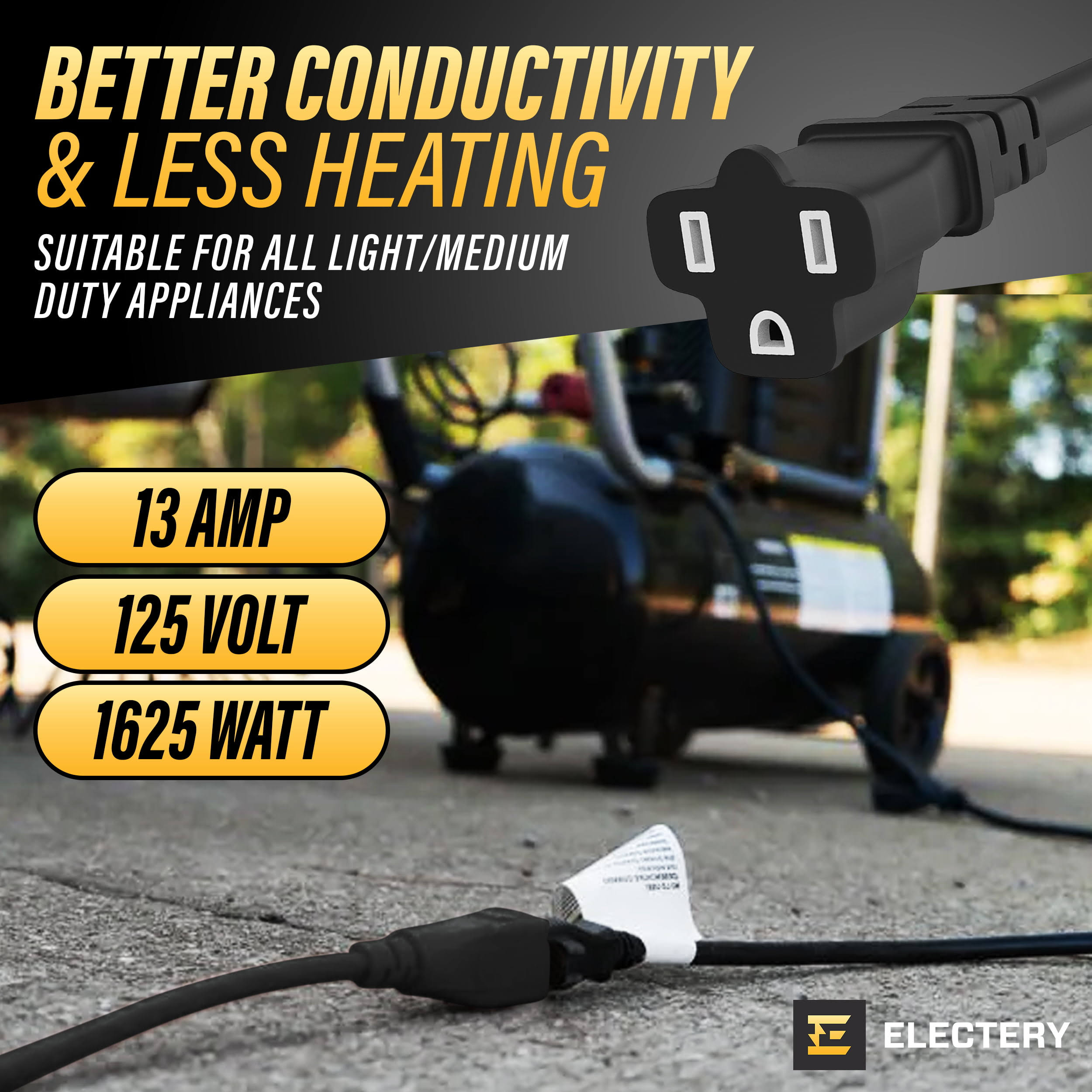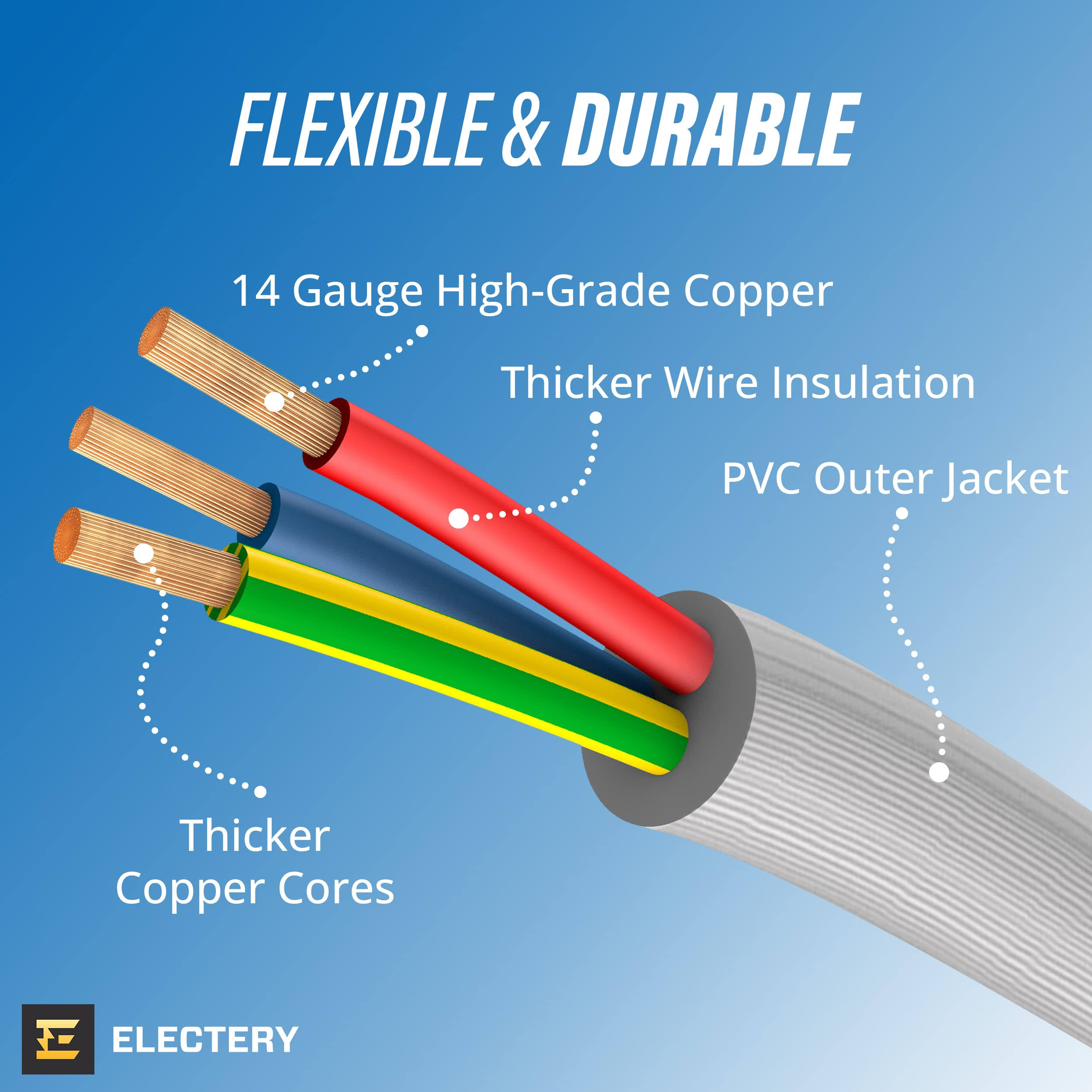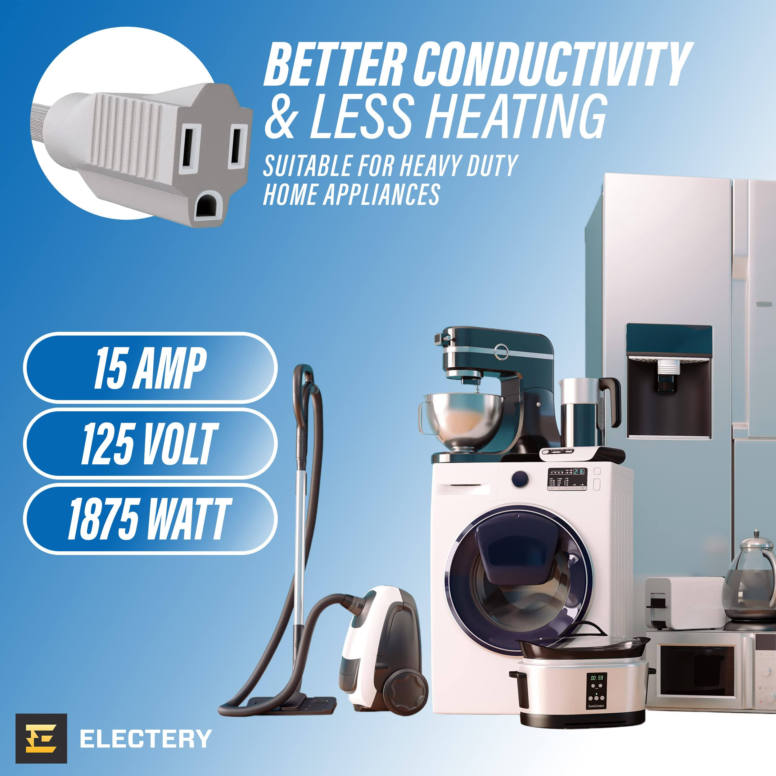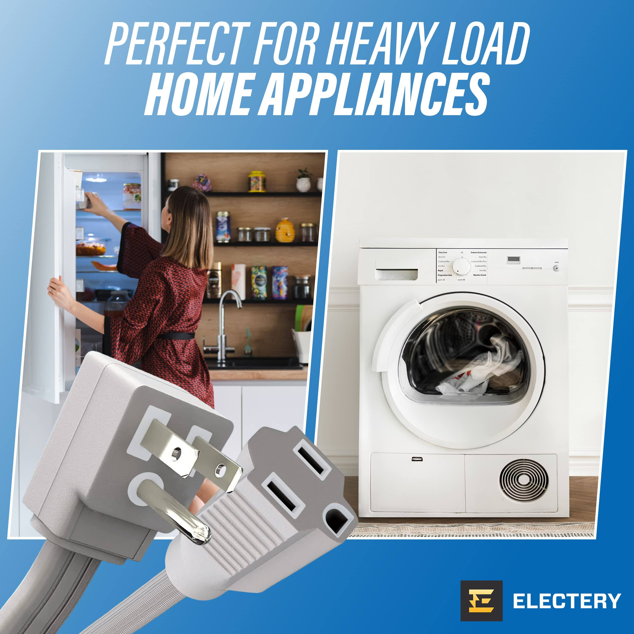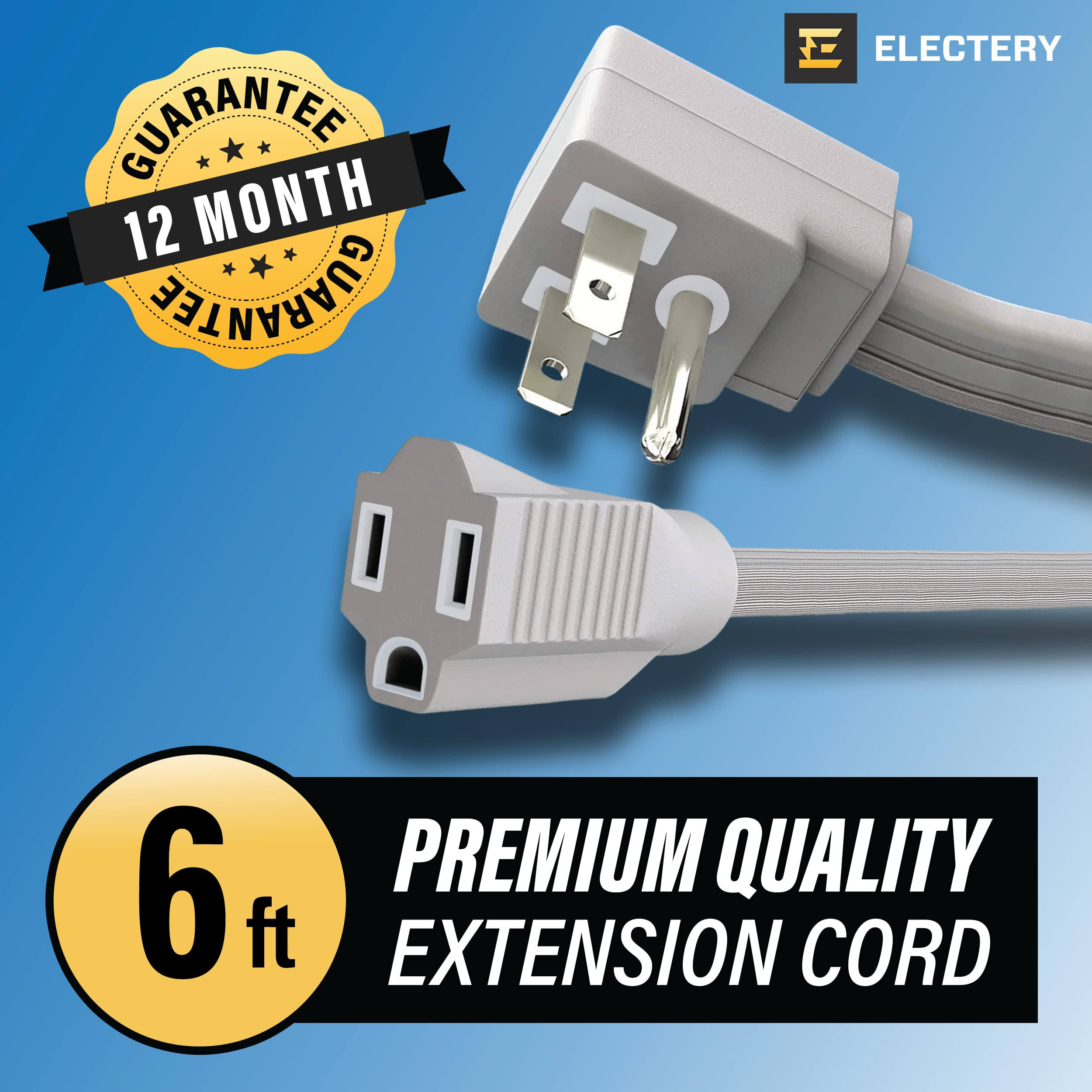 ELECTERY Heavy Duty Appliance Extension Cord, 14 AWG- 3 Prong Grounded Flat Plug, Gray Power Wire for Indoor Air Conditioner and All Major