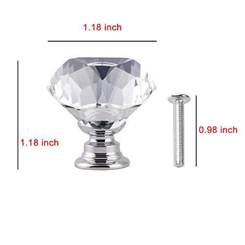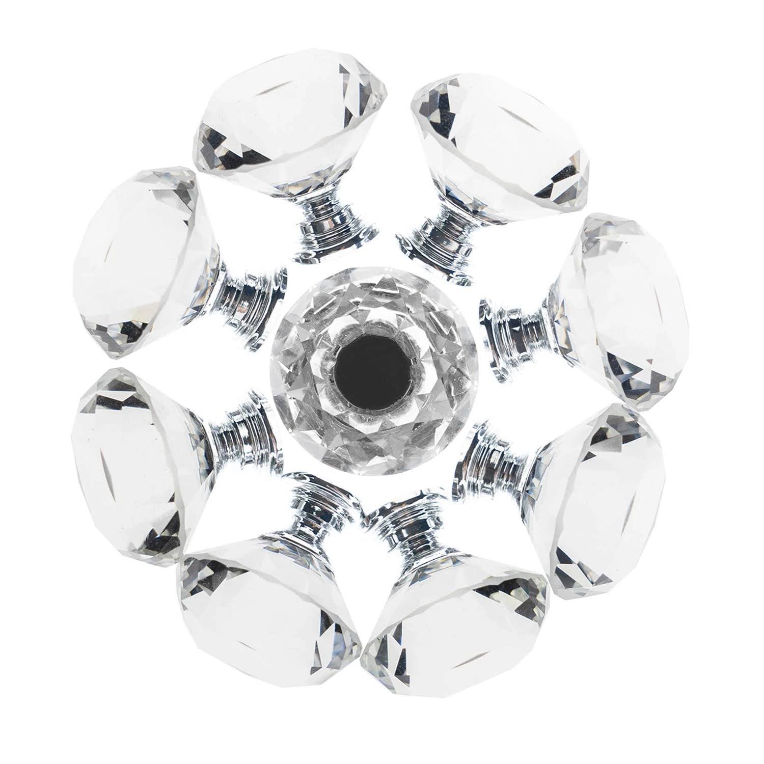 YourGift 6 Pack Drawer Knobs Diamond Shaped Crystal Glass 30mm Cabinet Knobs Pull Handles (30 mm, 6 Pack, Silver)