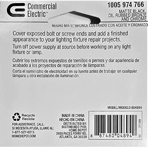 Commercial Electric Lamp Cap Nuts Tapped 832-38in Diameter, 6 Assorted, Matte Black, Oil Rubbed Bronze and Chrome 804894