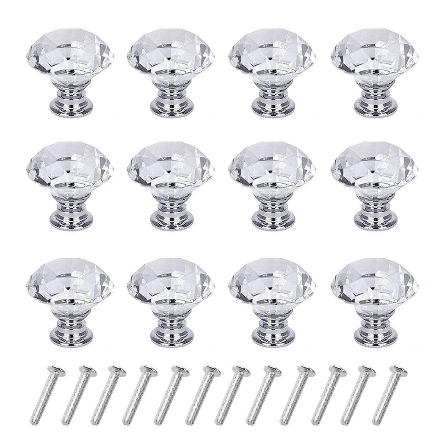 YourGift 12 Pack Drawer Knobs Diamond Shaped Crystal Glass 40mm Cabinet Knobs Pull Handles (40 mm, 12 Pack, Silver)
