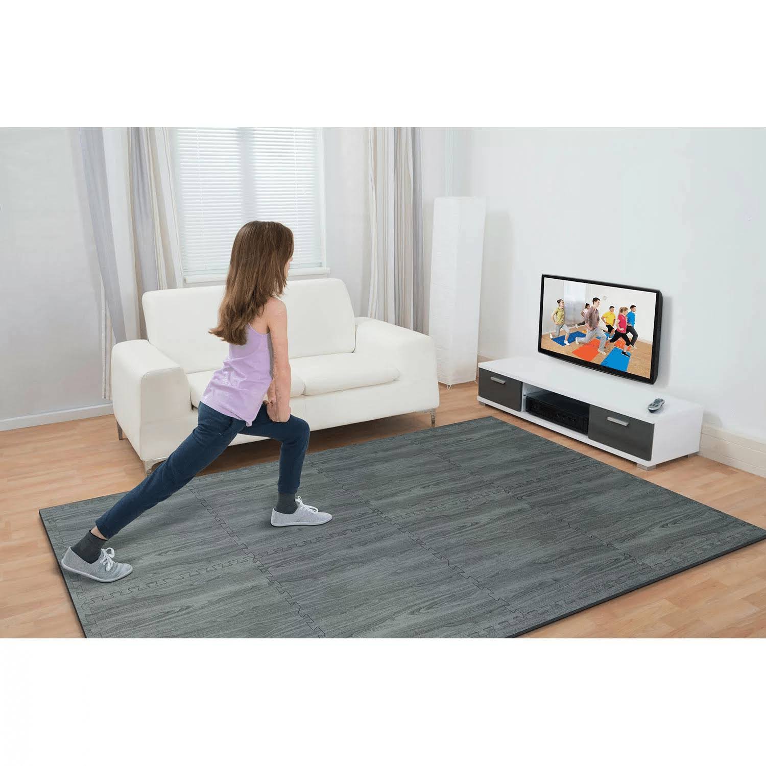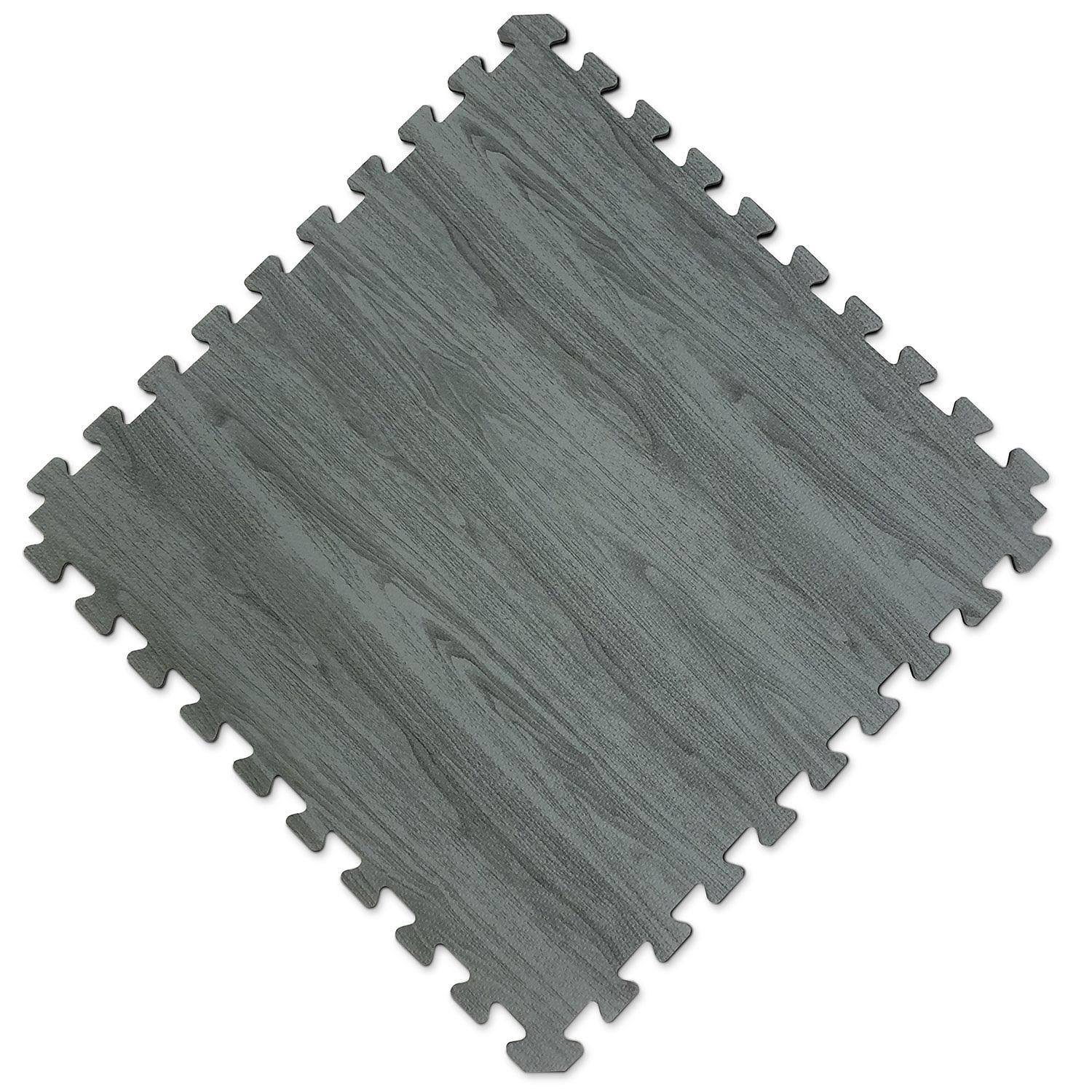 Norsk 25" x 25" Reversible Foam Flooring, Gray Wood & Black, 8 Tiles