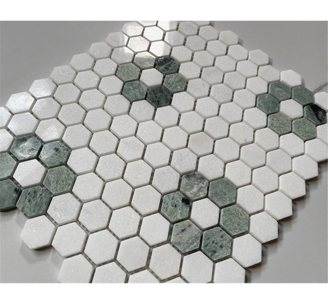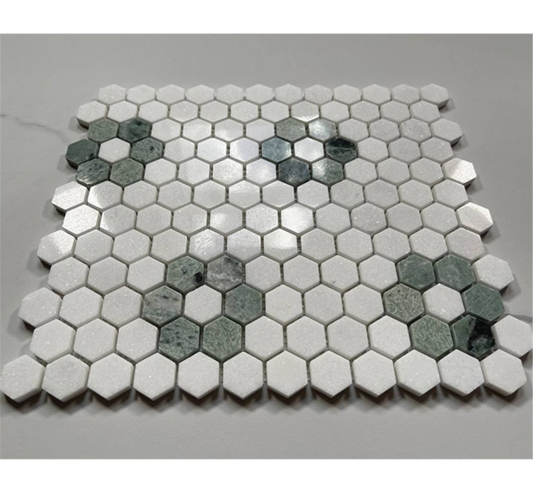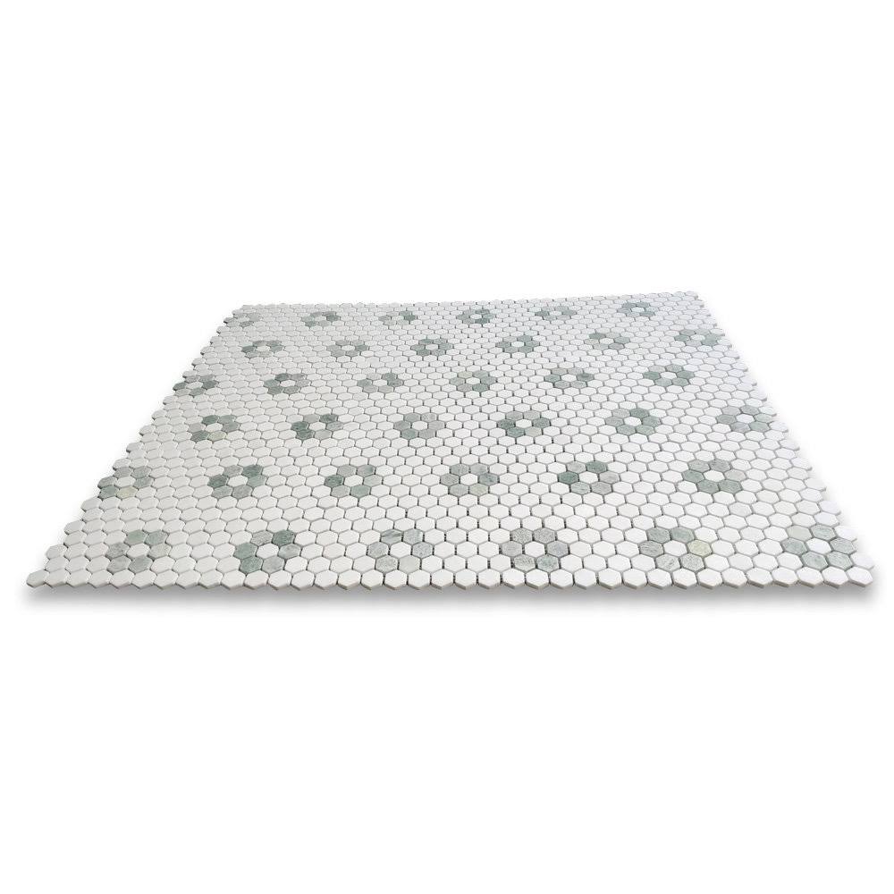 Ming Green Thassos White Rosette Marble Hexagon Mosaic Tile Polished