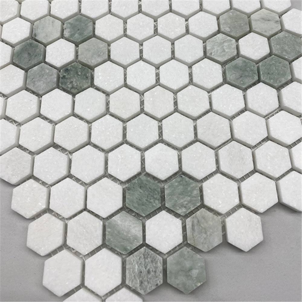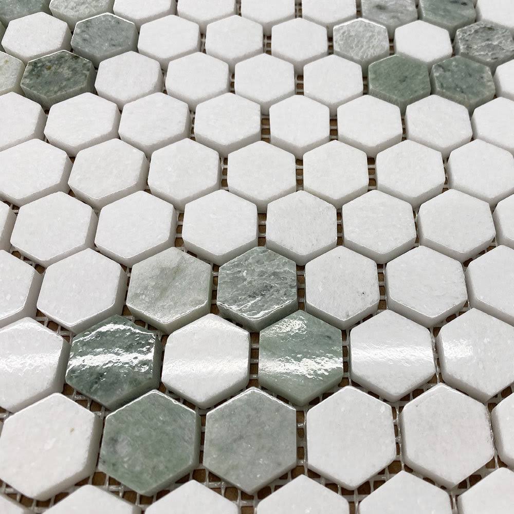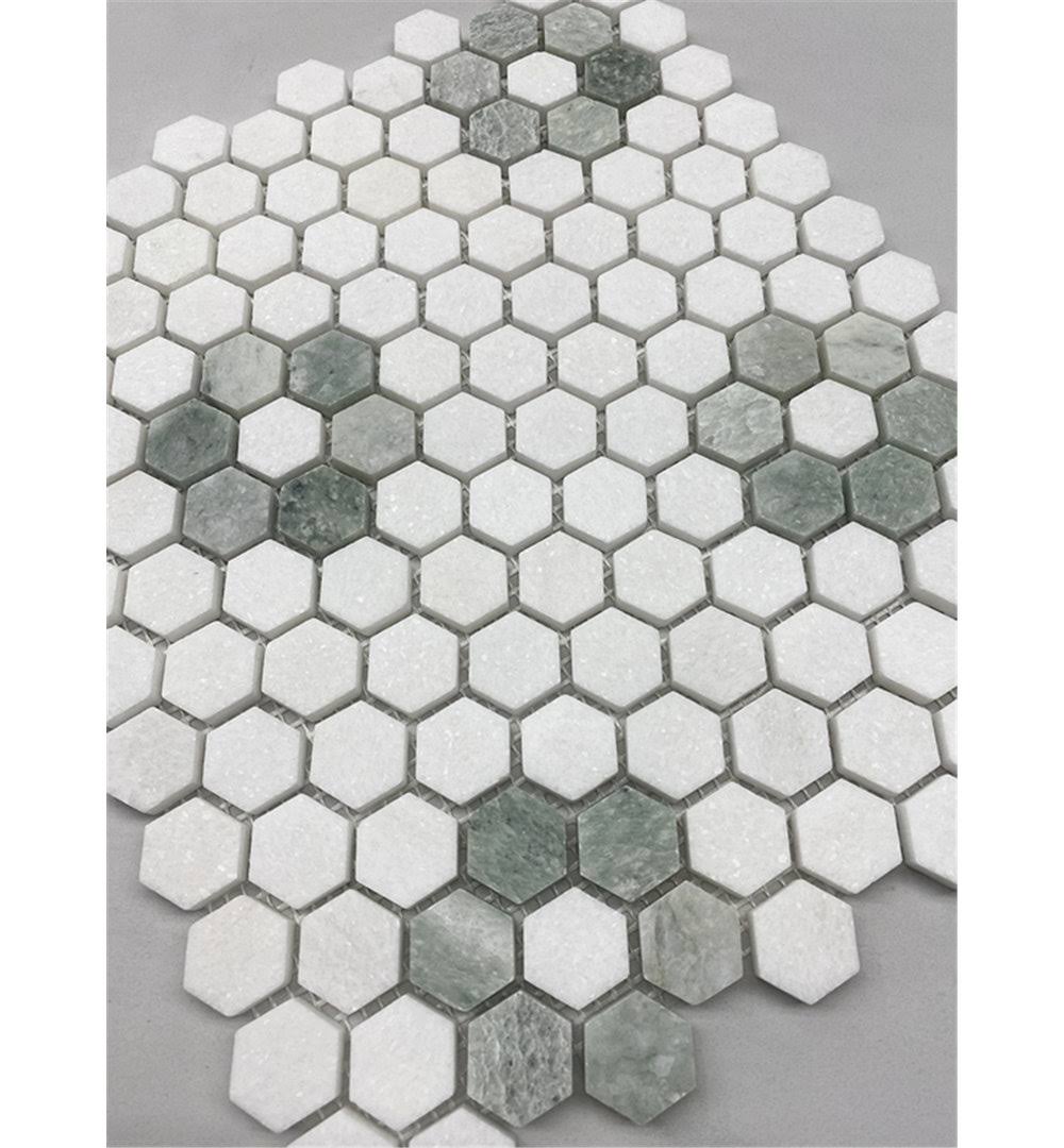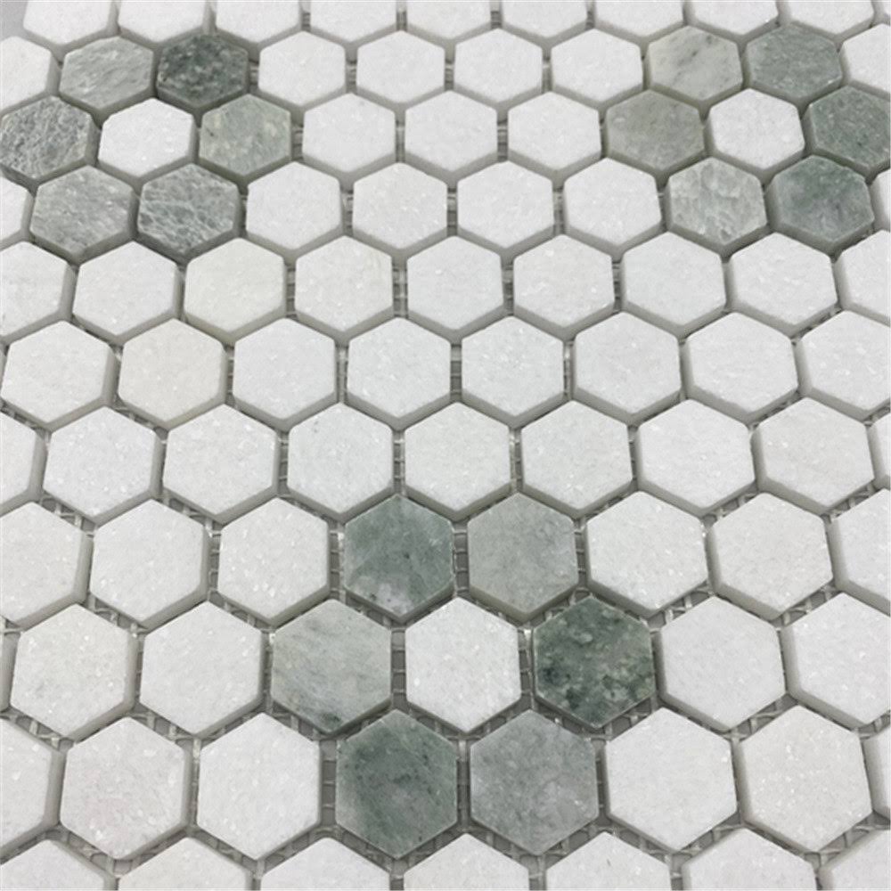 Rosette Hexagon Thassos White Ming Green Marble Mosaic Tile Honed