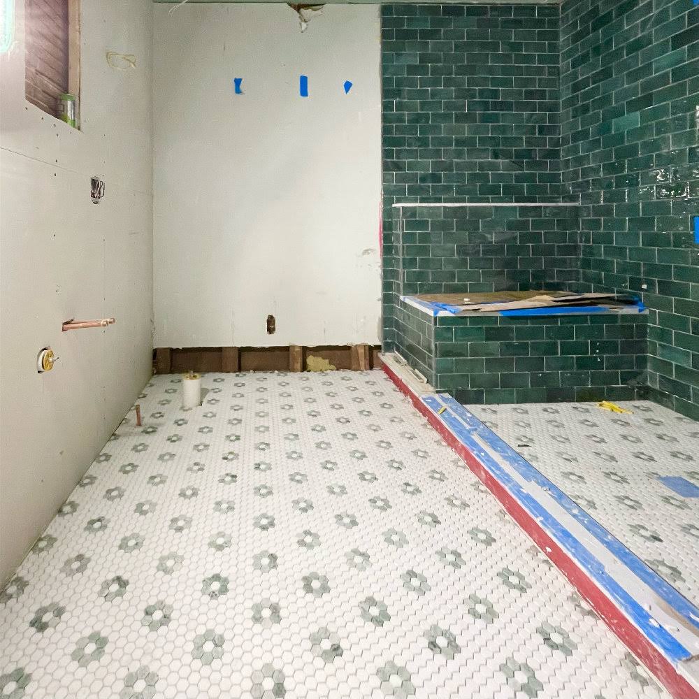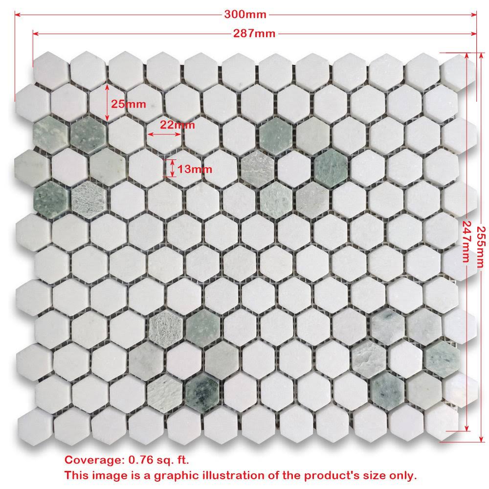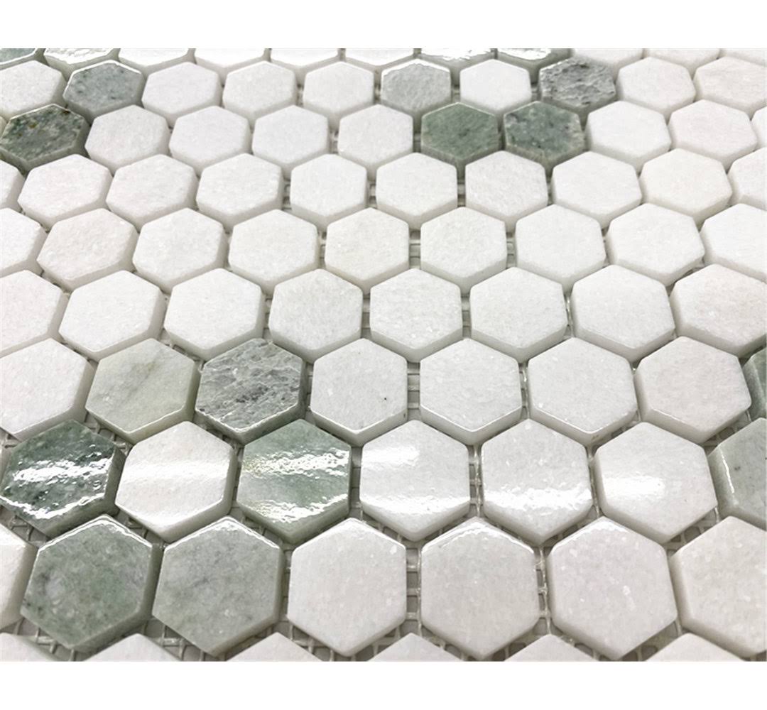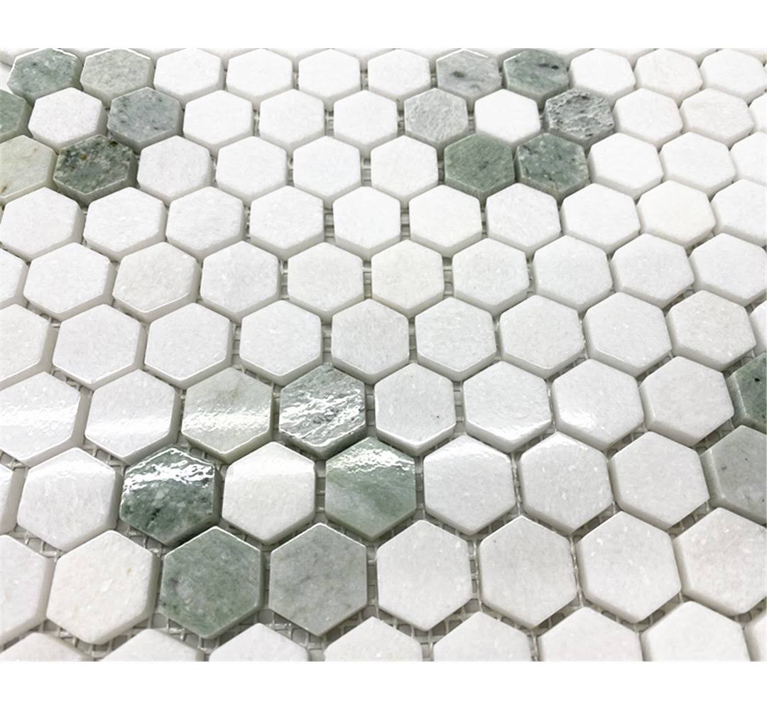 Rosette Hexagon Thassos White Ming Green Marble Mosaic Tile Honed