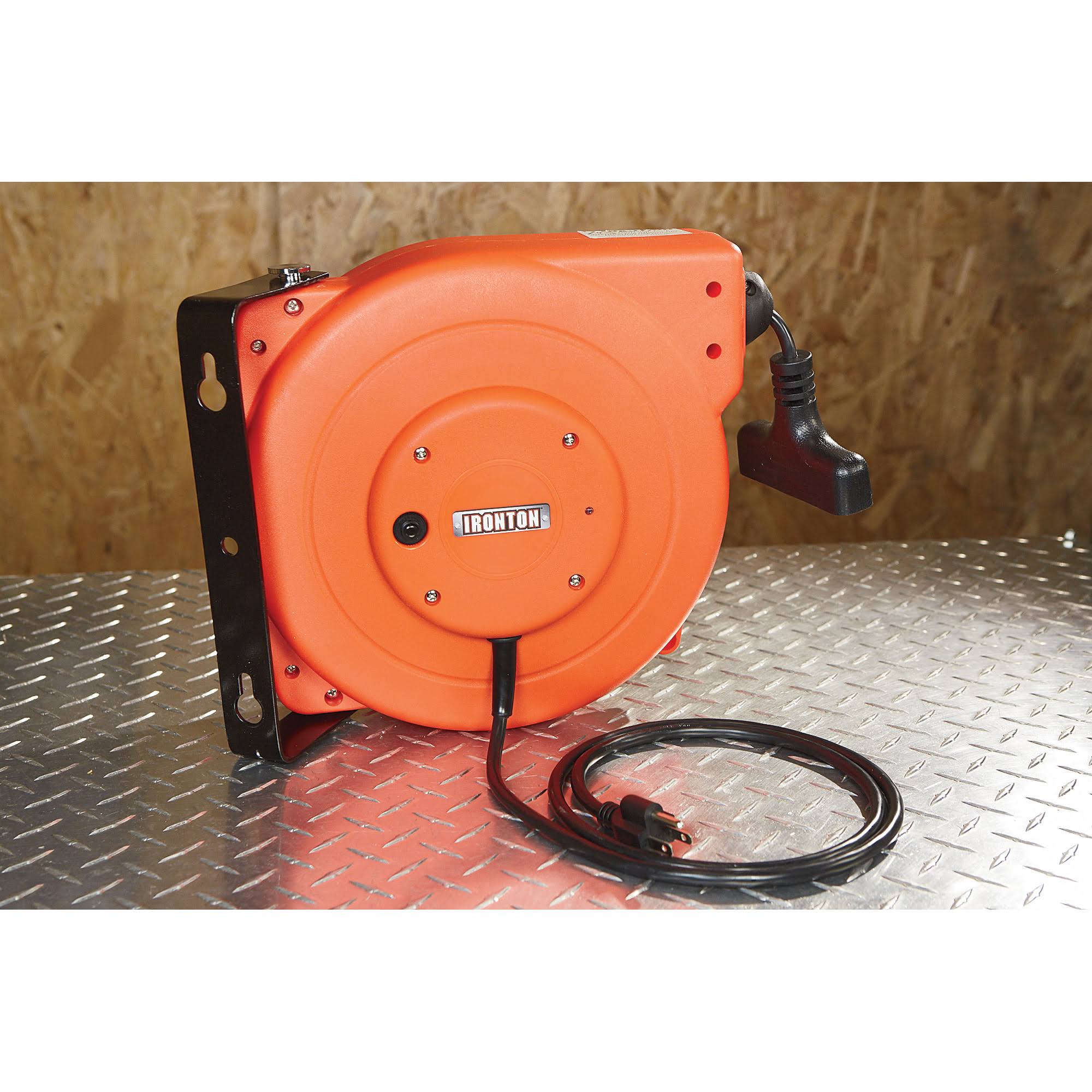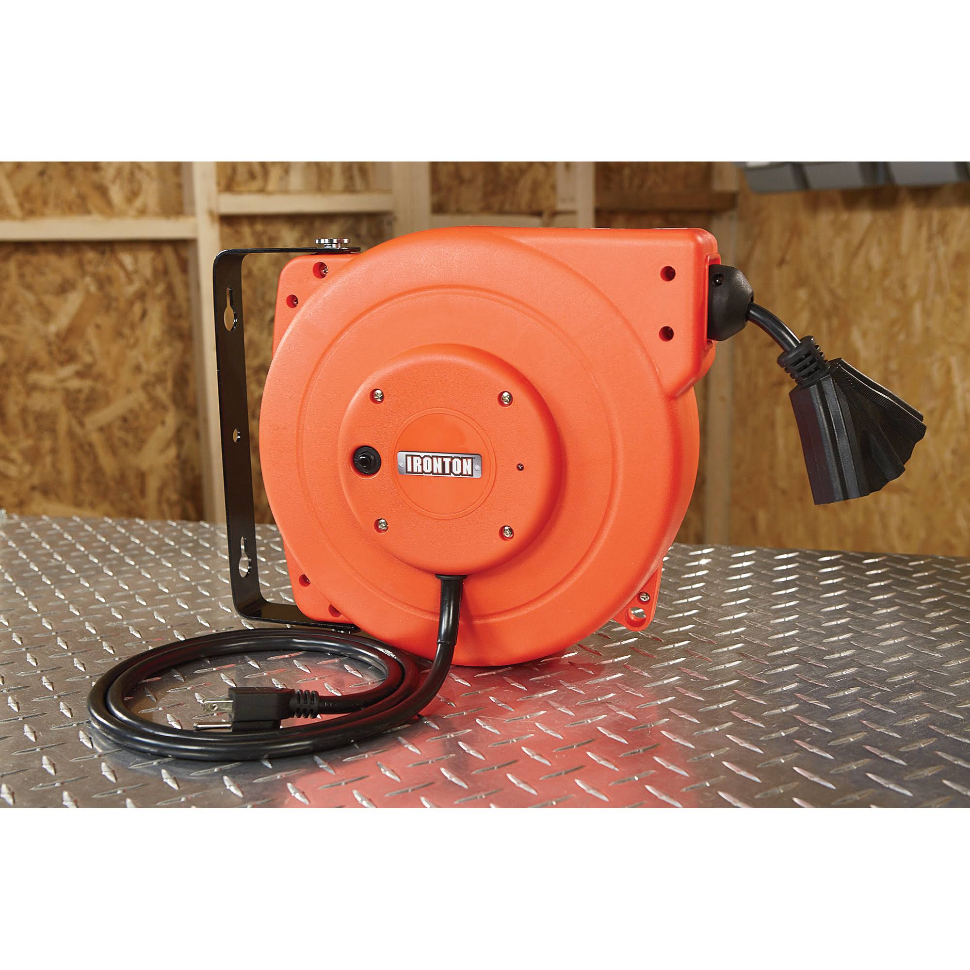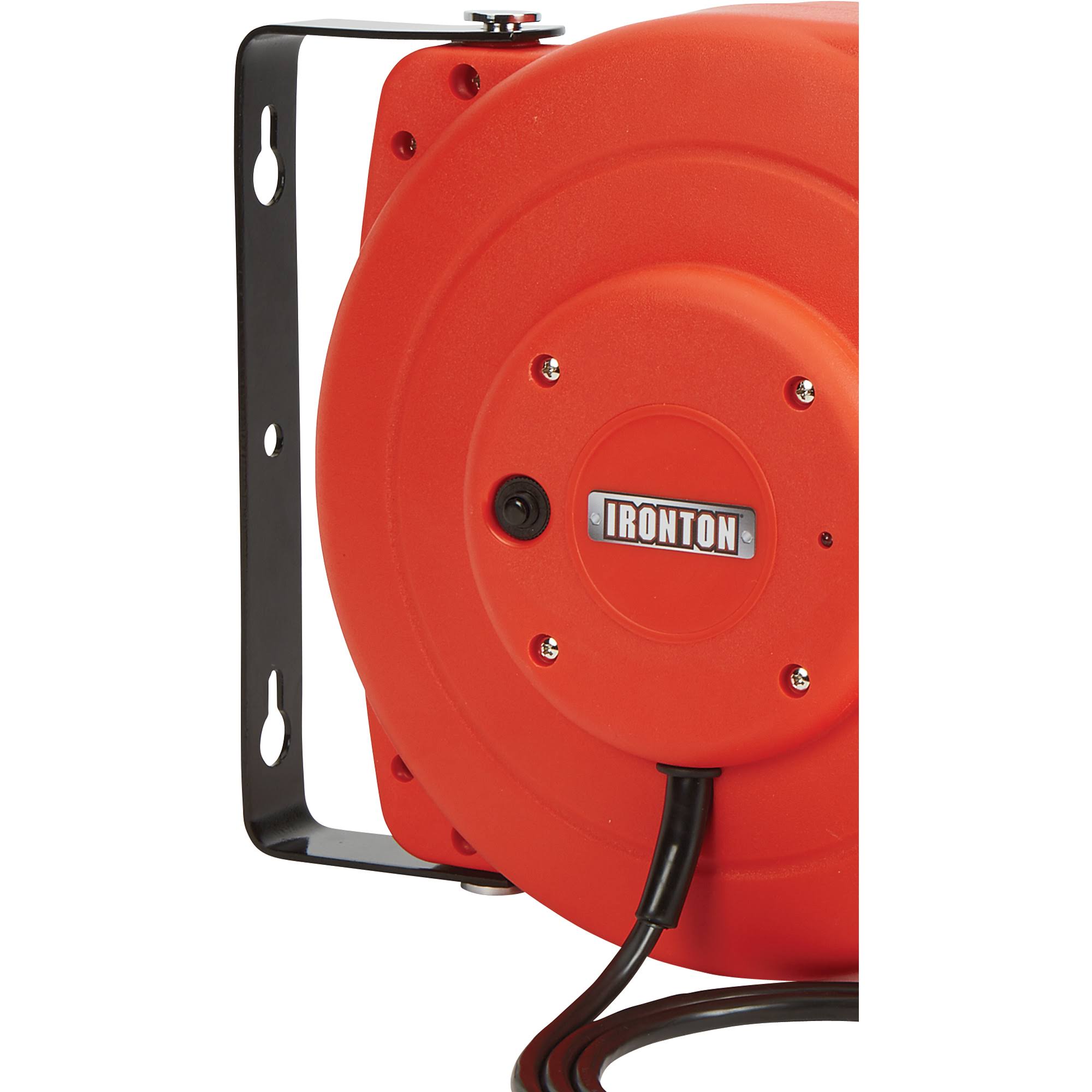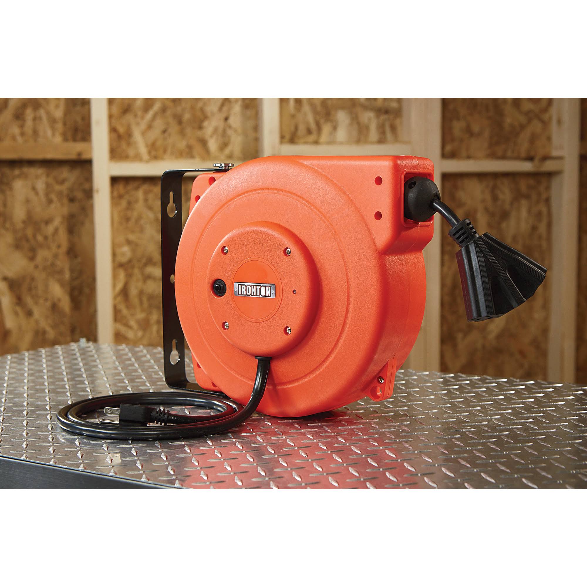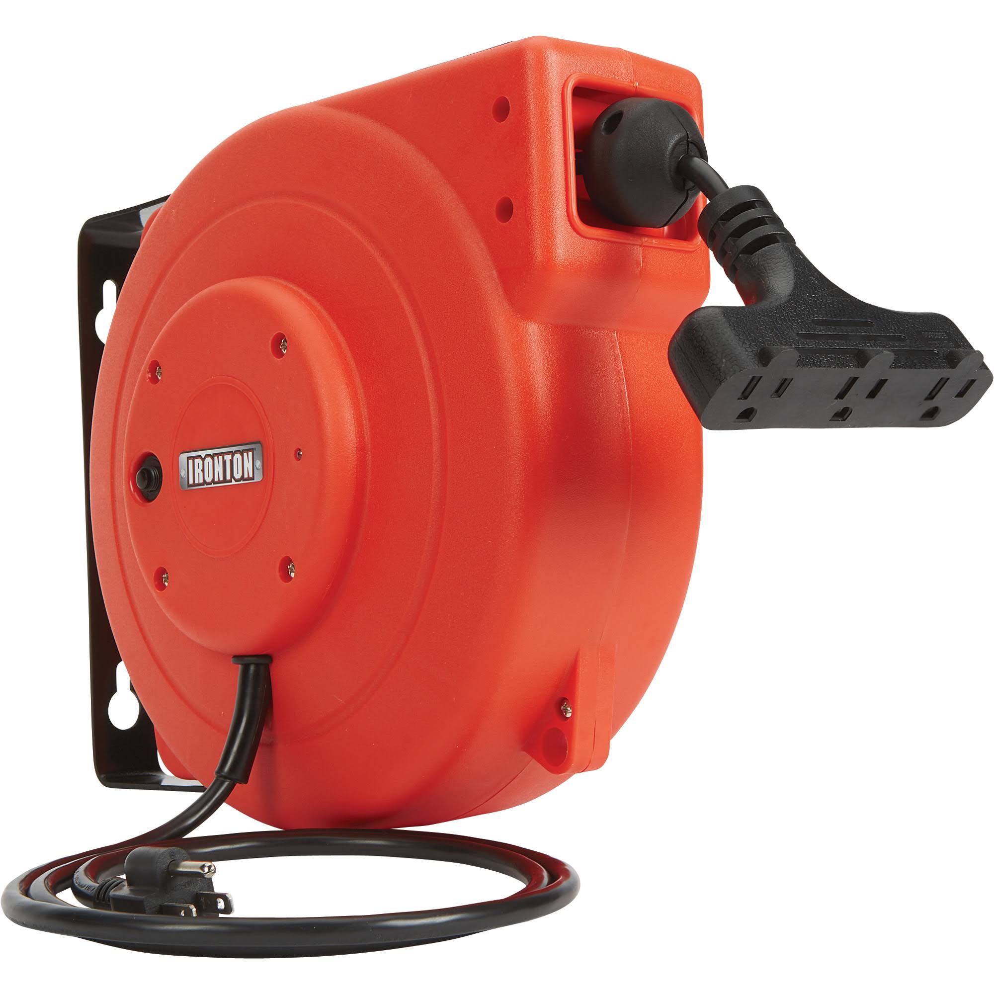 Ironton Retractable Extension Cord Reel- 33ft. 16/3 Triple Tap