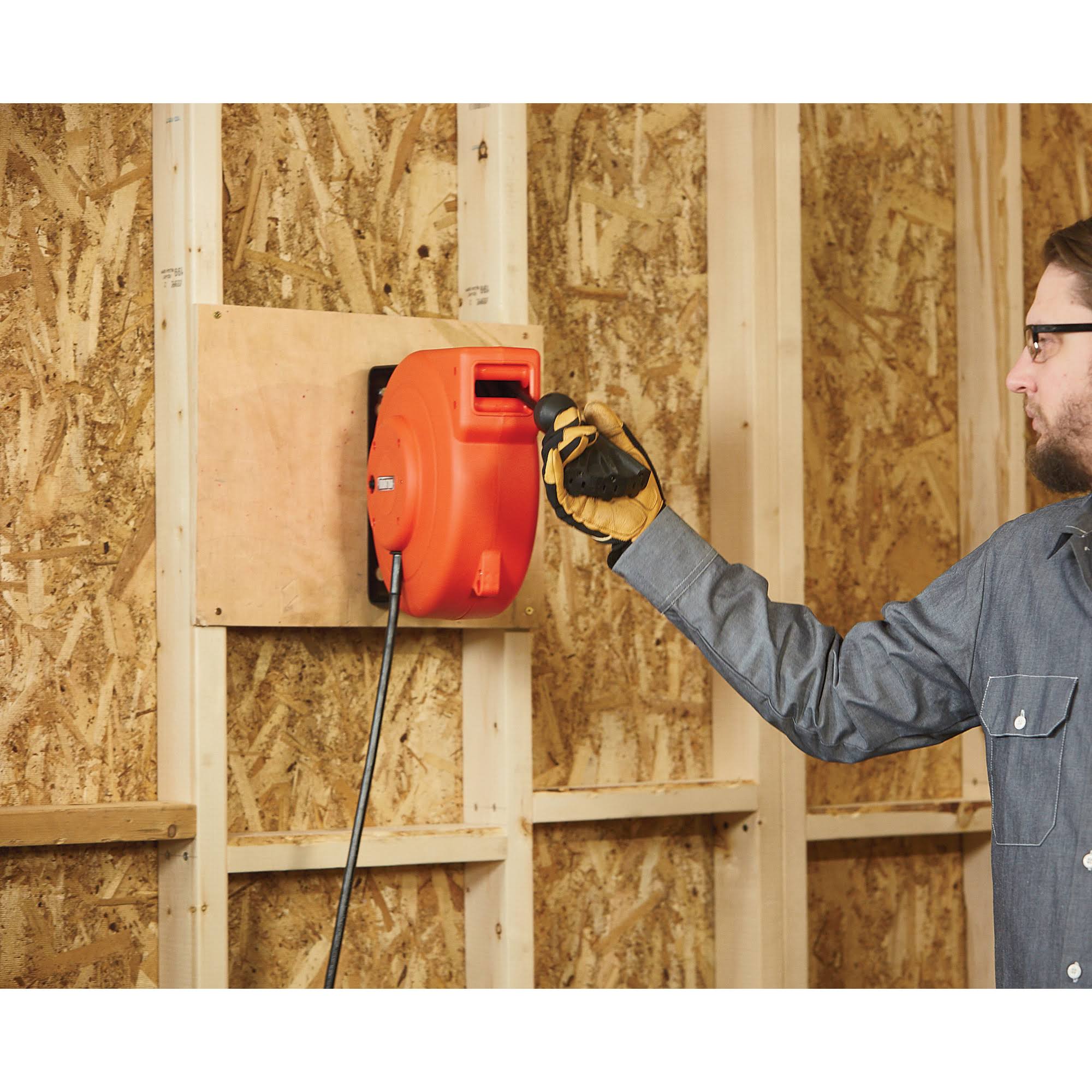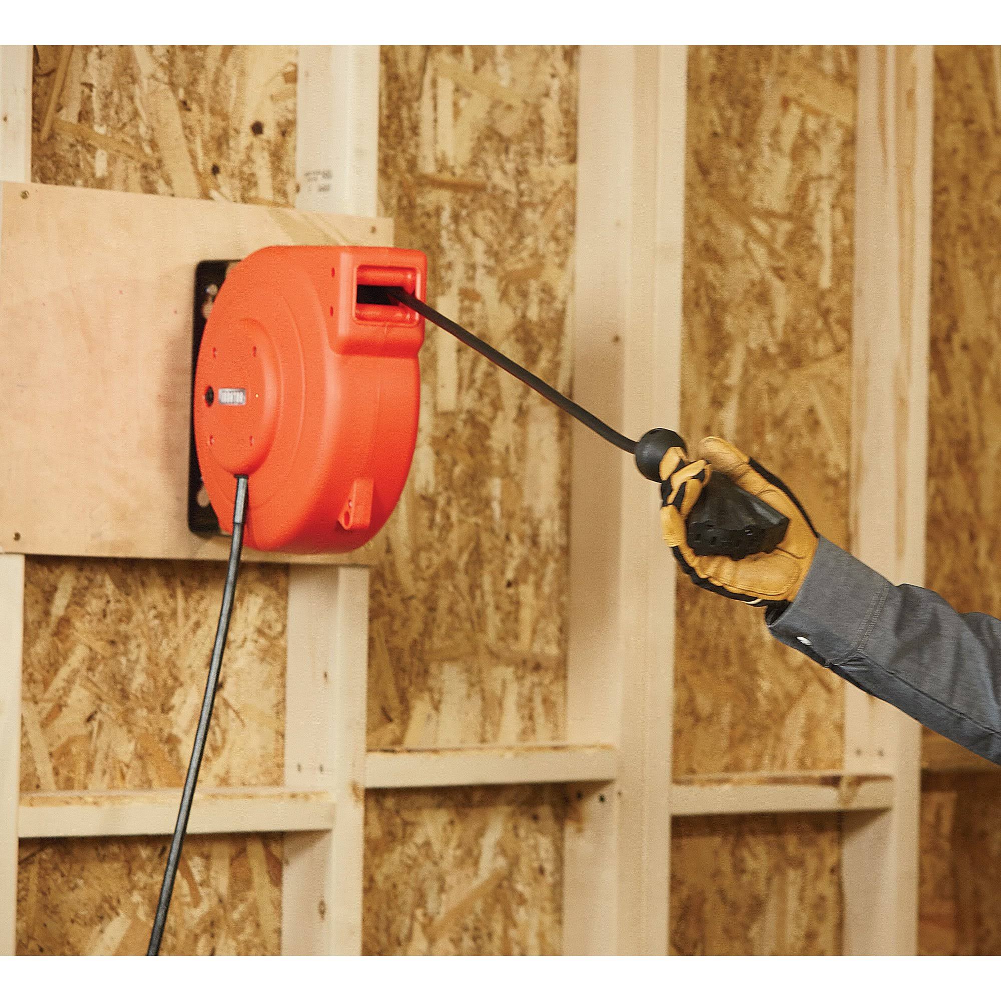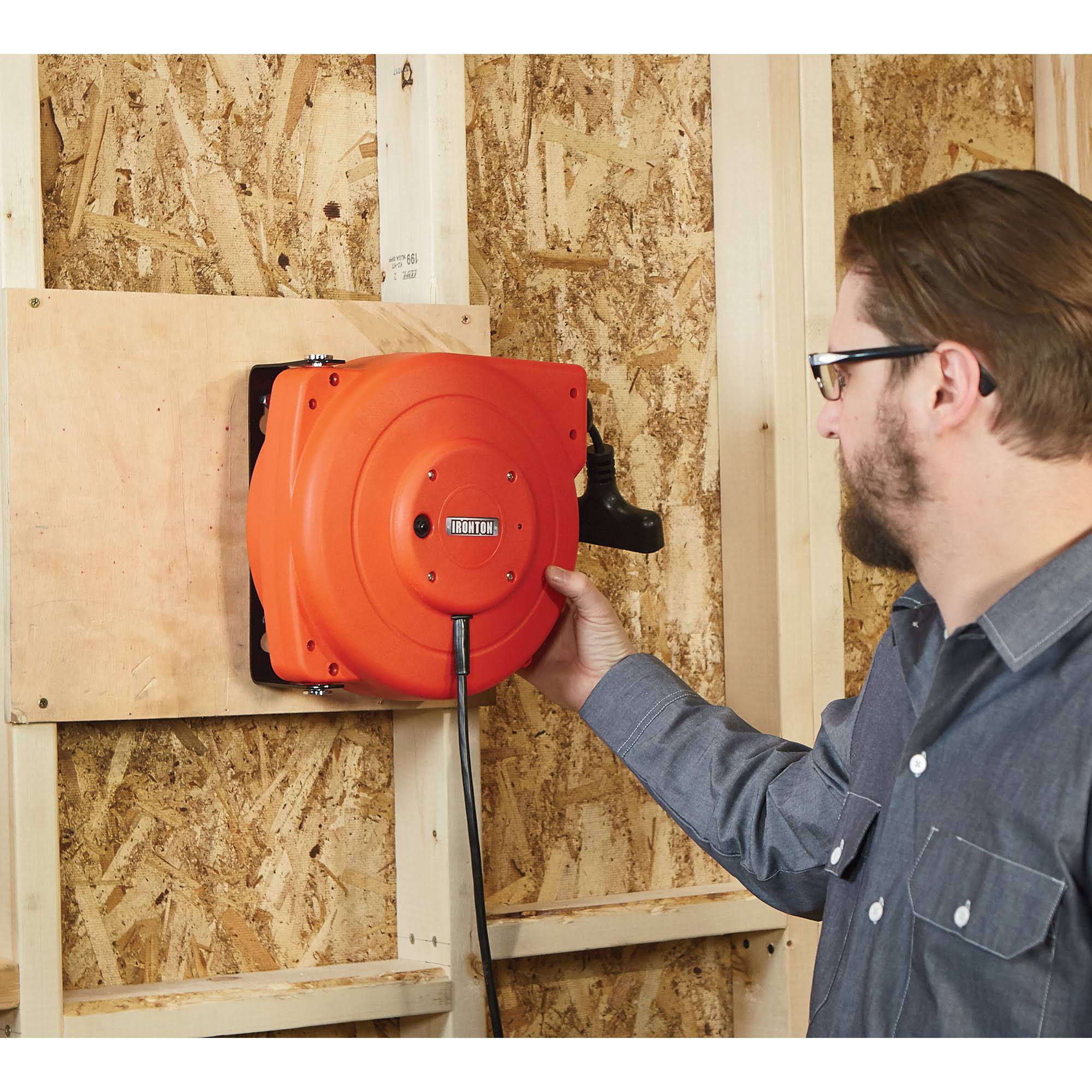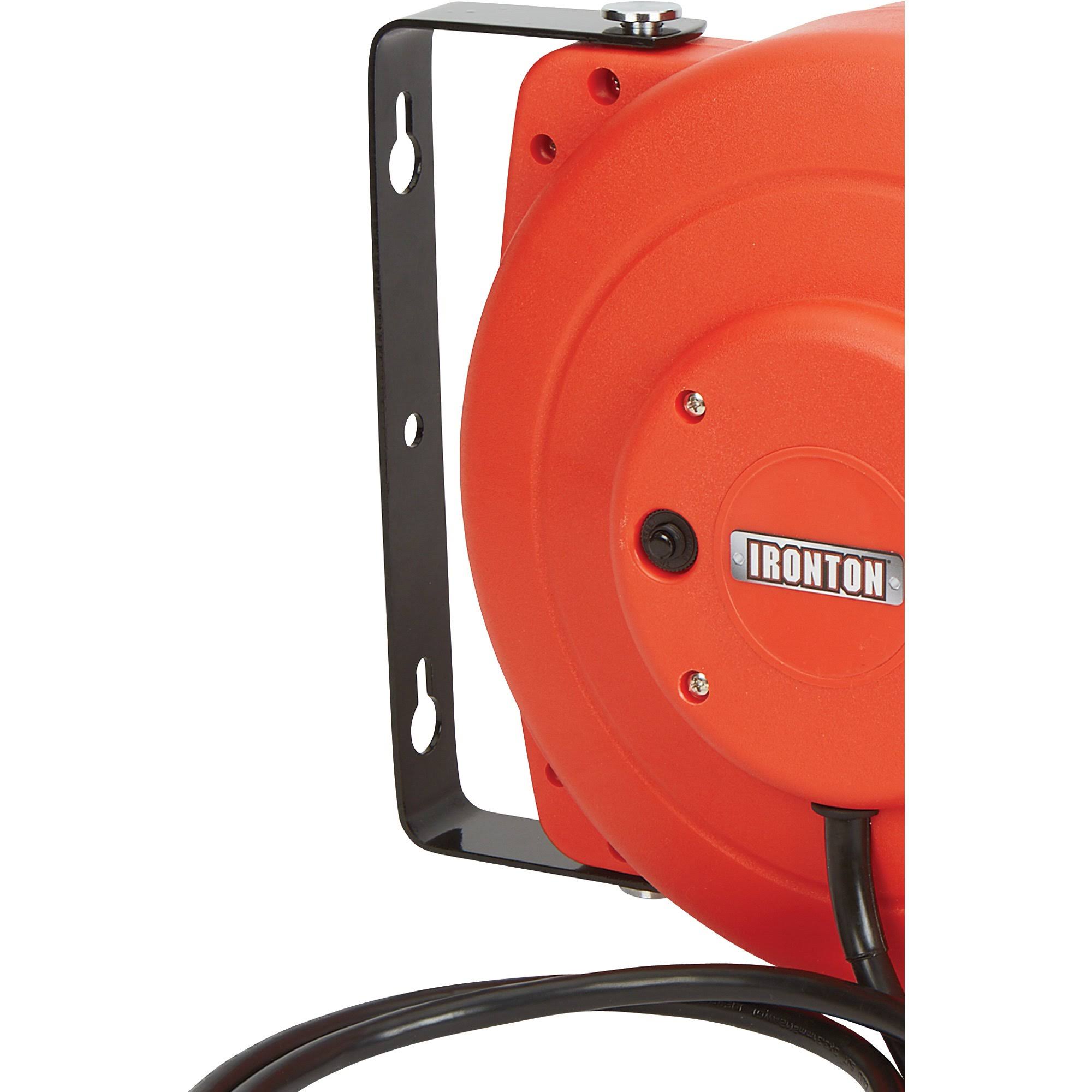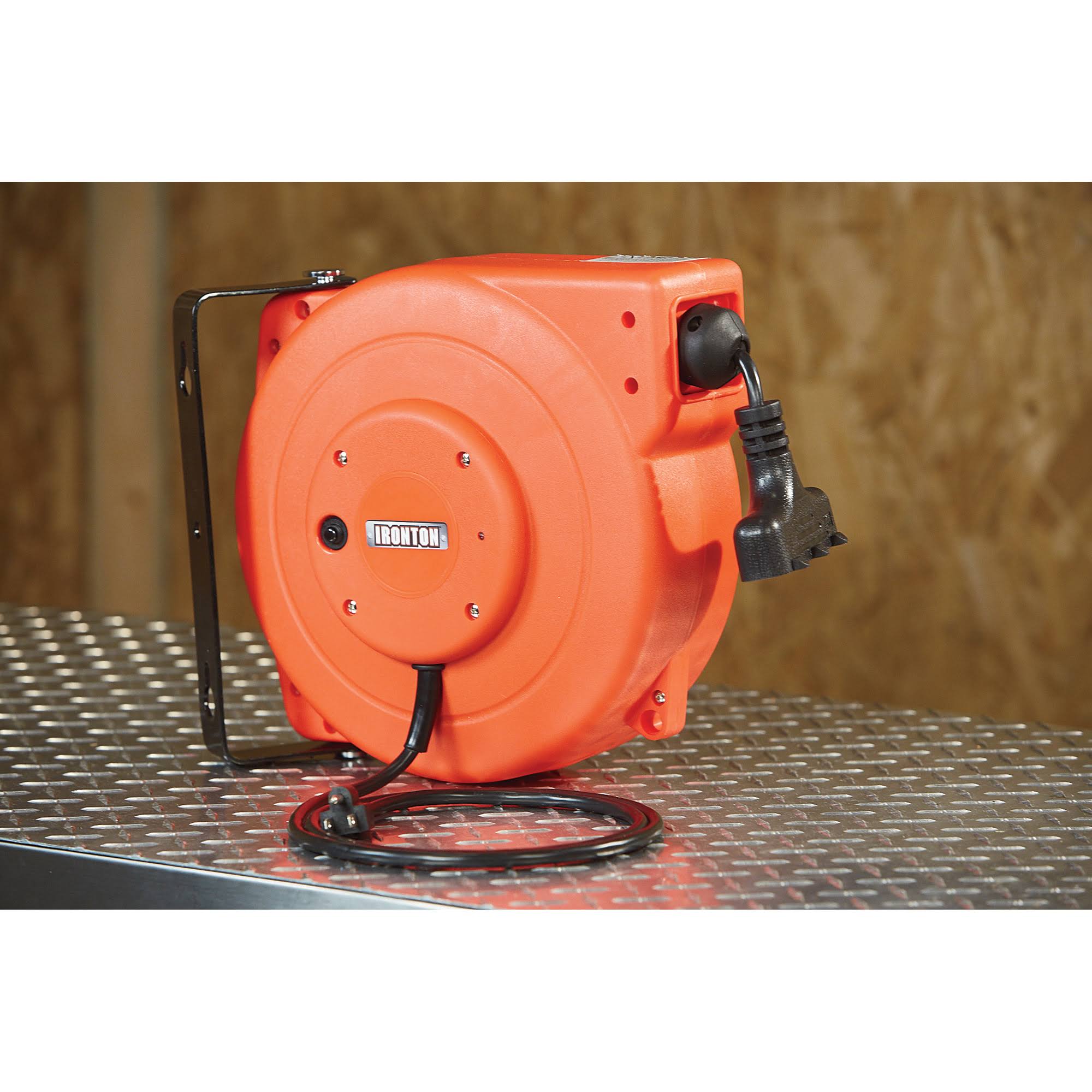 Ironton Retractable Extension Cord Reel- 33ft. 16/3 Triple Tap