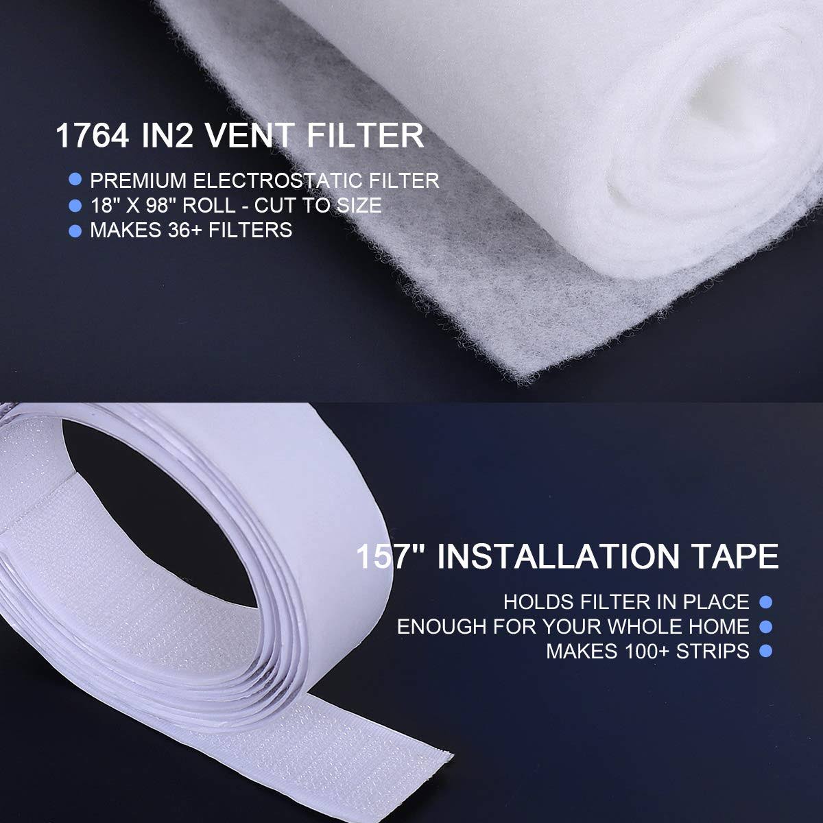 Lisol Complete Air Vent Filters Kit- 98 x 18 Electrostatic Media with 157 of Installation Tape 36+ Filters per Roll for HVAC, AC