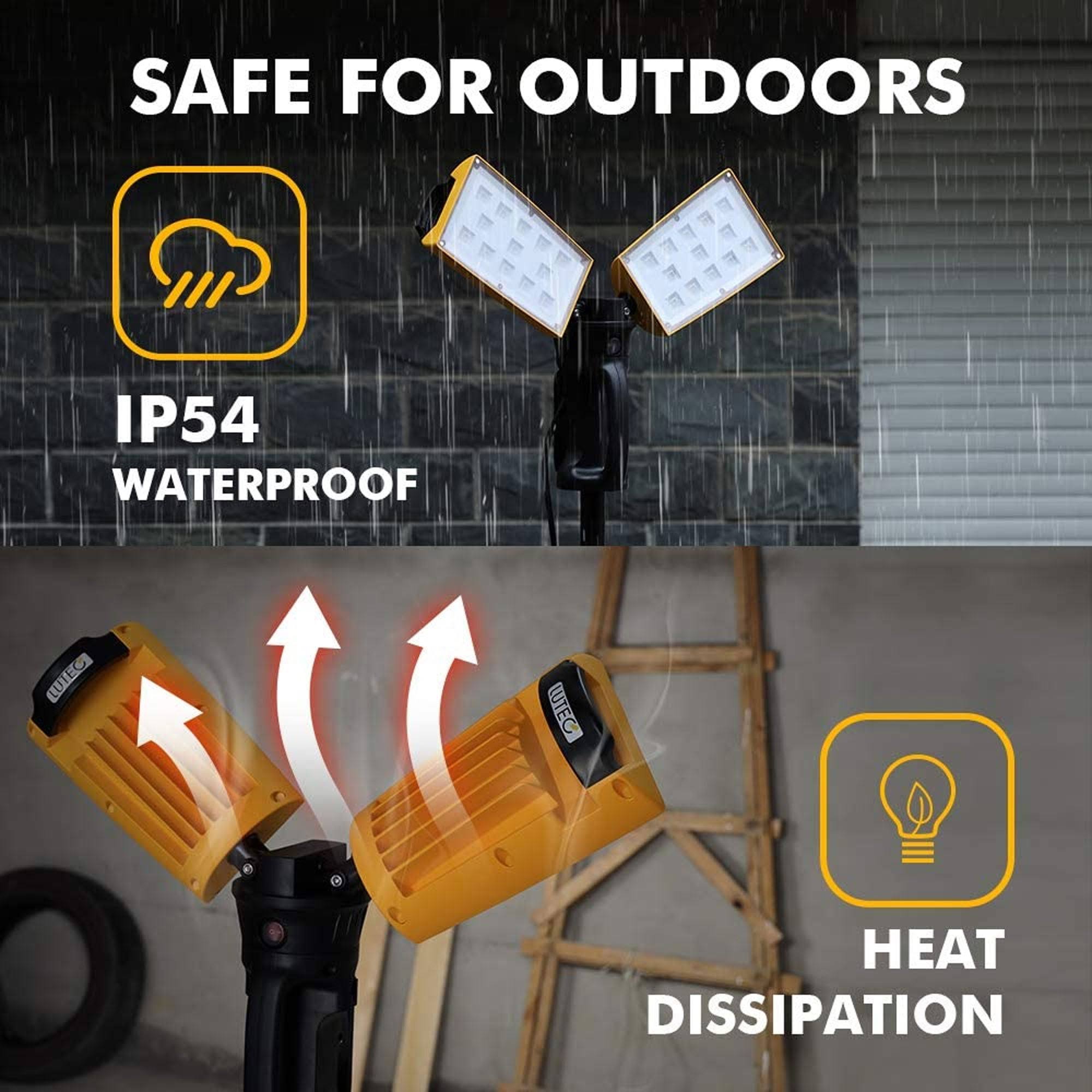 LUTEC 9000 Lumen Rotating Dual Head LED Adjustable Work Light with Stand