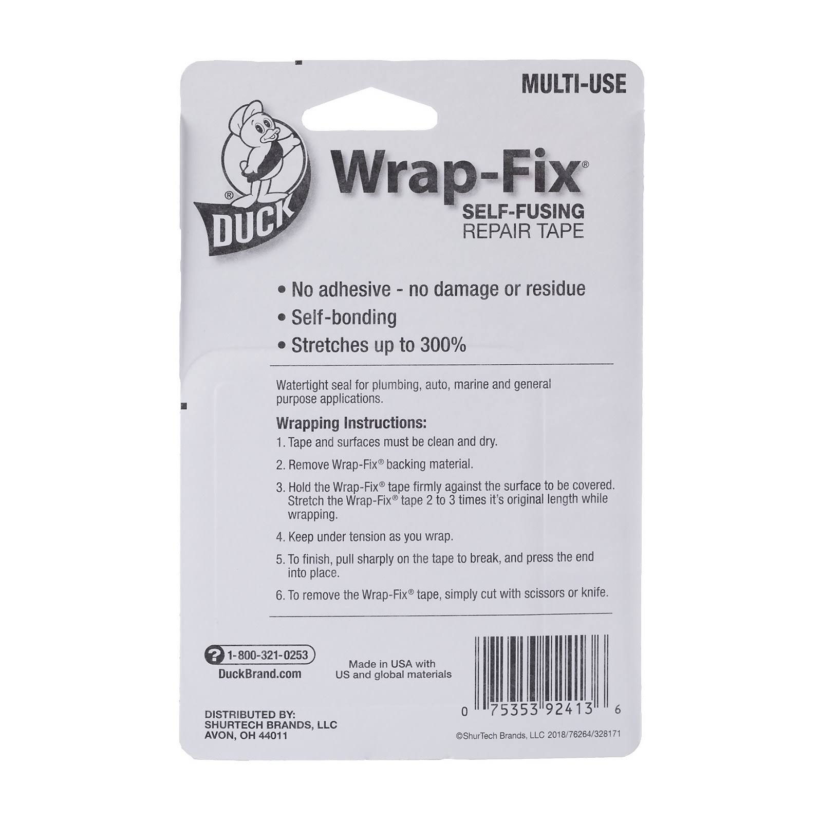 Duck Wrap-Fix Self-Fusing Repair Tape- Black 1 in x 10 ft